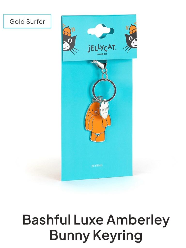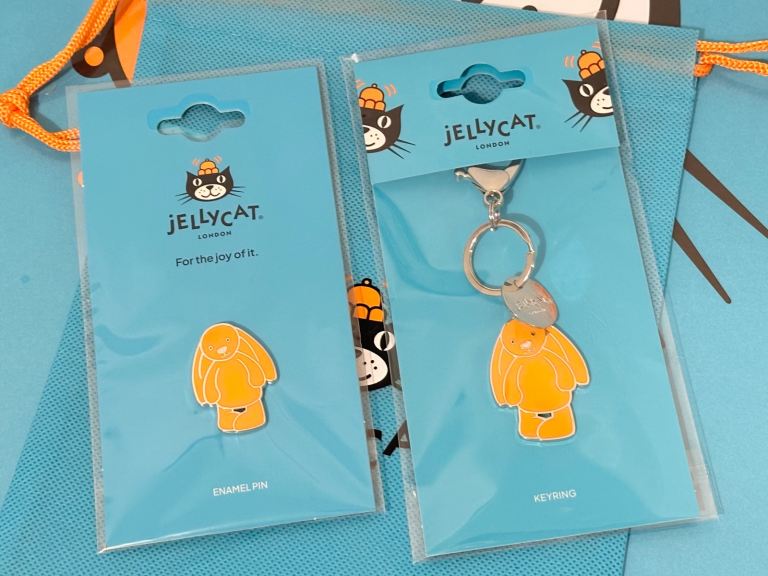 Jellycat Orange Bashful Luxe Amberley Bunny Keyring & Enamel Pin Badge Set