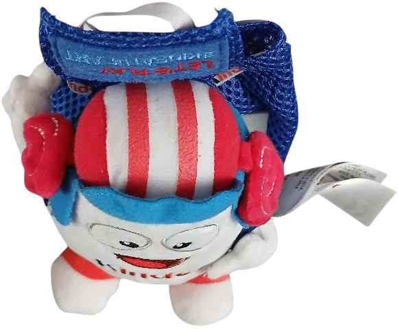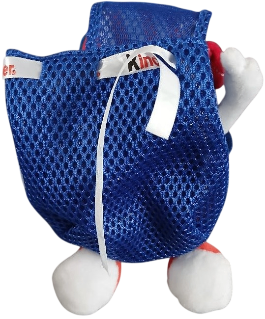This soft toy is in excellent condition. The backpack is empty but it may be filled with Kinder eggs or other items of your choice before presenting to a child.