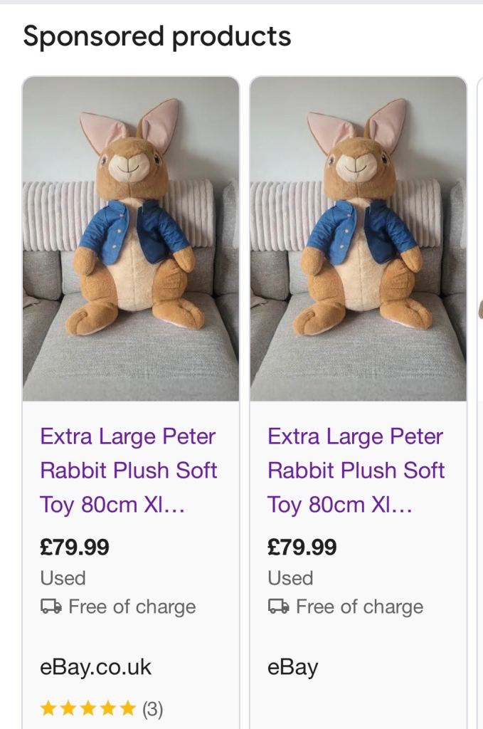 Large Peter rabbit teddy excellent condition, going on eBay for £80, oto 40