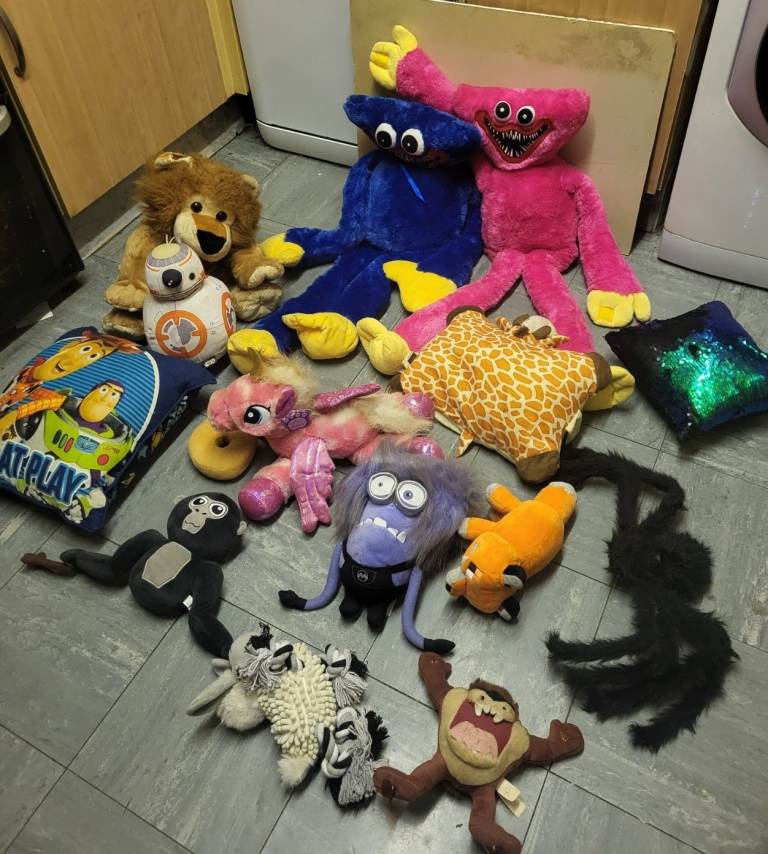 Posting for 1+ monthsLarge Soft Toy Bundle – Huggy Wuggy, Plush Toys, Disney, Animals – Must Go