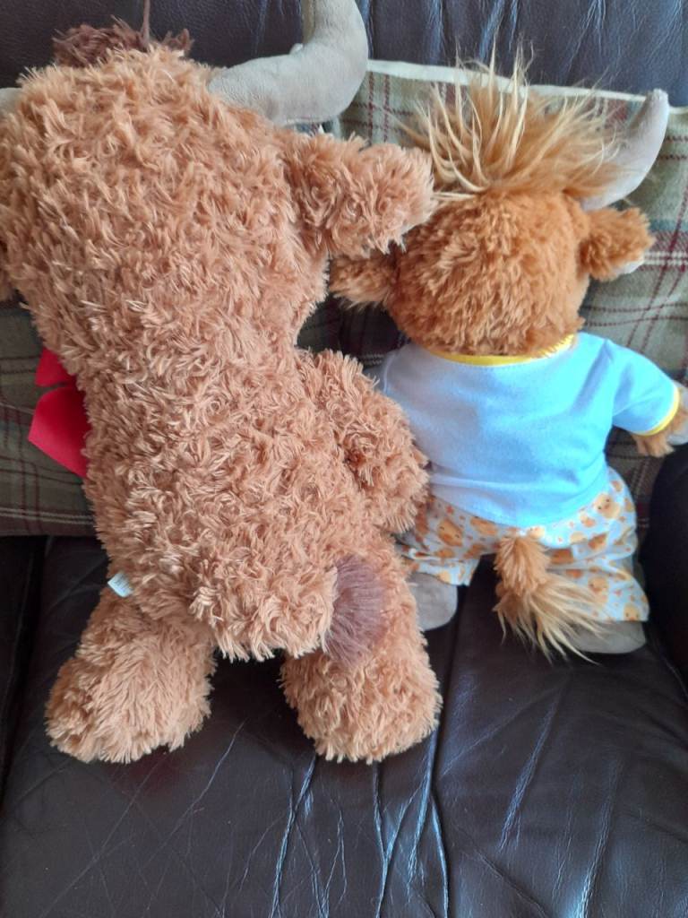 Two lovely Highland cow plush toys available, perfect for any collector or child.