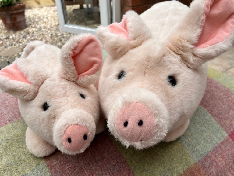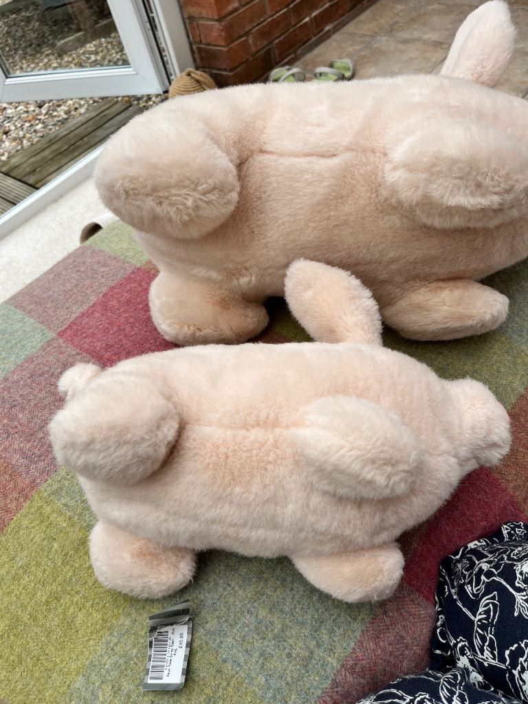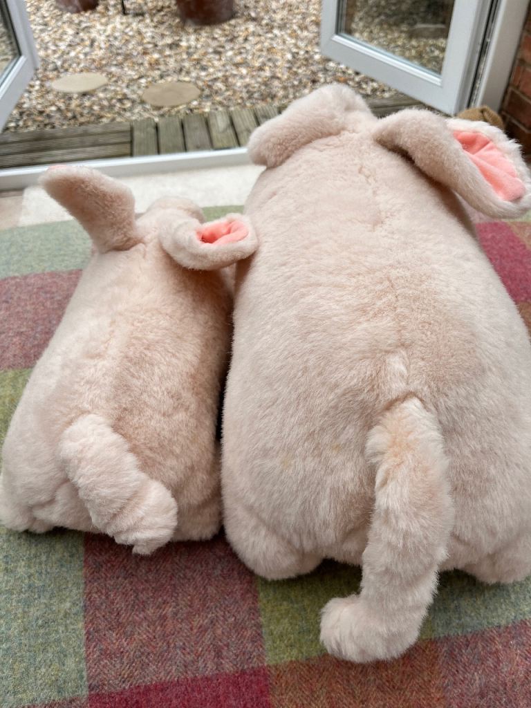 Excellent condition pair of large gorgeous piggie soft toys - mummy and piglet complete with curly tails.