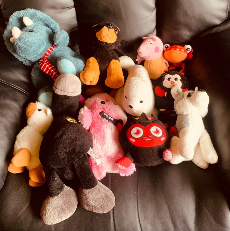 Two huge talking teletubbies in a very good condition plus one small teletubbie and 12 various soft toys. See photos