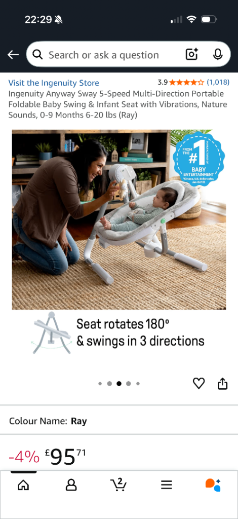 Posting for 3+ monthsIngenuity AnyWay Sway Dual-Direction Portable Baby Swing–Ray Rocker Bouncer