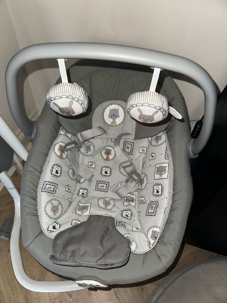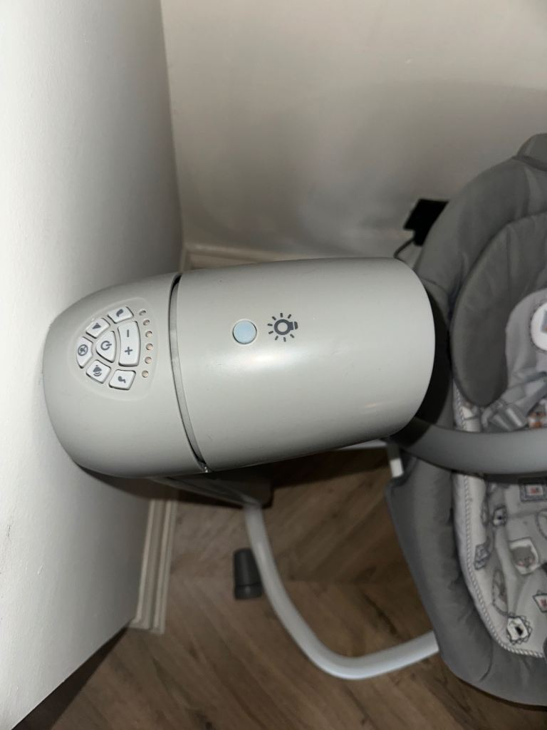 Hardly used as my wee one didn’t really like it and preferred to just be rocked by us lol. All bits have been washed and fabric covers put back on. Plays music and light can be dimmed/brightened.