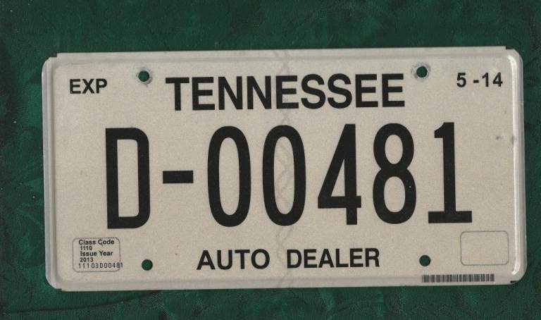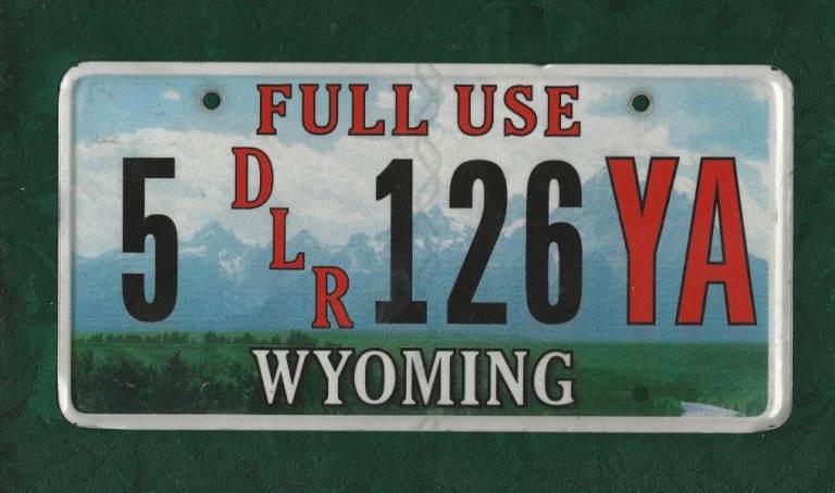 2 x American Car License Dealer Number Plates from Wyoming and Tennessee