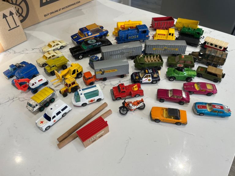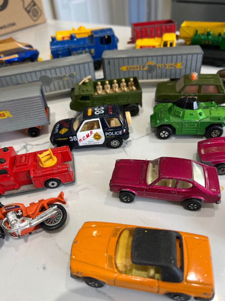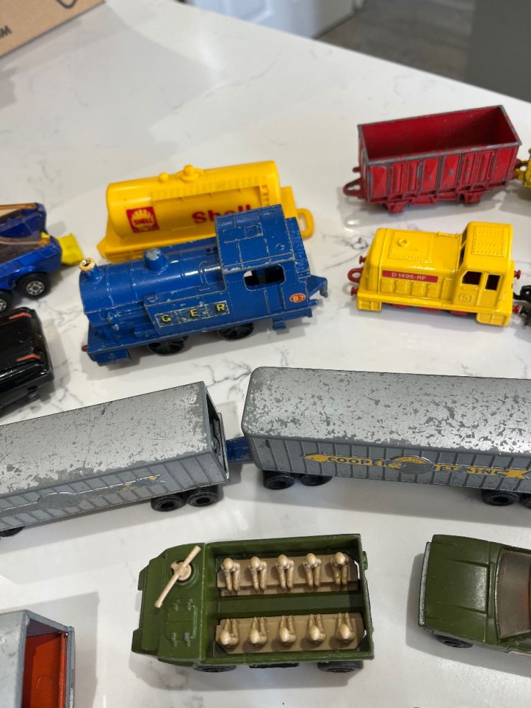 Assorted Old Toy Cars & Trains, Matchbox, Corgi & Dinky. Various conditions but all are original and have been in our family for many years. More are available on request.