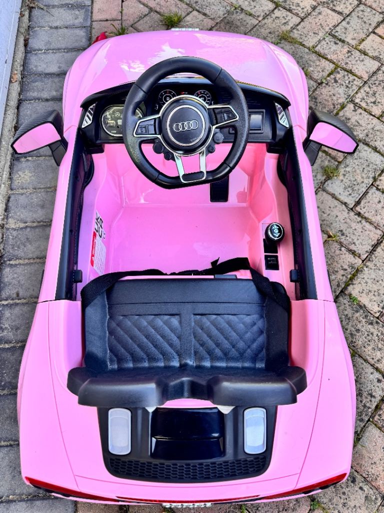 The 12v Pink Audi R8 Spyder Official Ride On Car brings Audis brand new style together with its well know quality for one of the best kids ride ons we have ever come across. This brilliant example of a Pink 12v kids car is a Licensed Audi product and as such comes with everything you would expect from an actual Audi on the road including all badges, led lights, MP3 speaker system, seat belt and all other functionalities you would expect from an officially licensed Audi kids car. The girls pink Audi comes with everything you need to get driving including battery and mains charger.