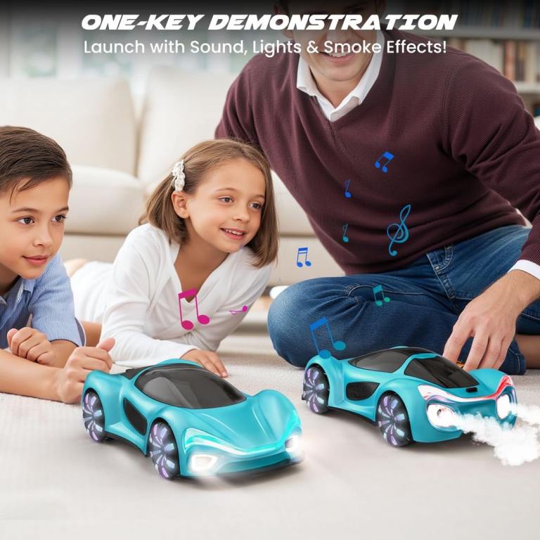 RC Drift Car 360° Stunt LED Wheels Spray Lights 2.4GHz Demo Mode – Blue
