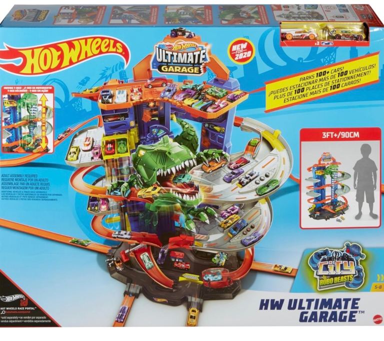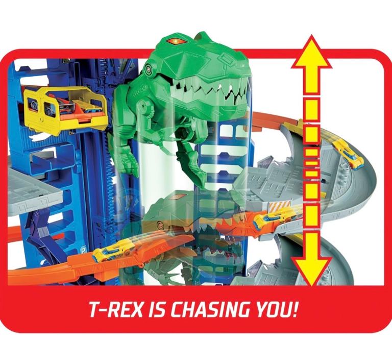 Hot Wheels City Ultimate Garage Playset with Multi-Level Racetrack, 91 cm Tall Moving T-Rex Dinosaur, Parks 100 Cars