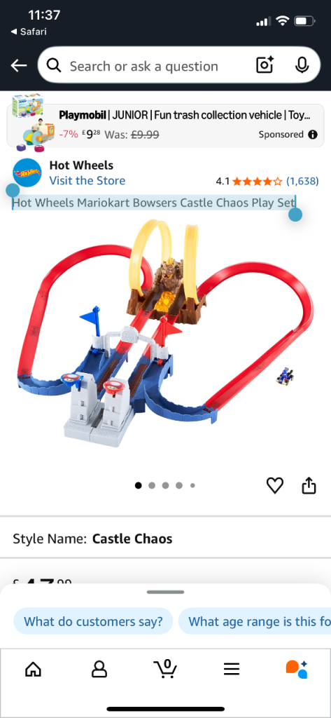 Hot Wheels Mariokart Bowsers Castle Chaos Play Set. New bought for £50 and the princess peach toy for £20