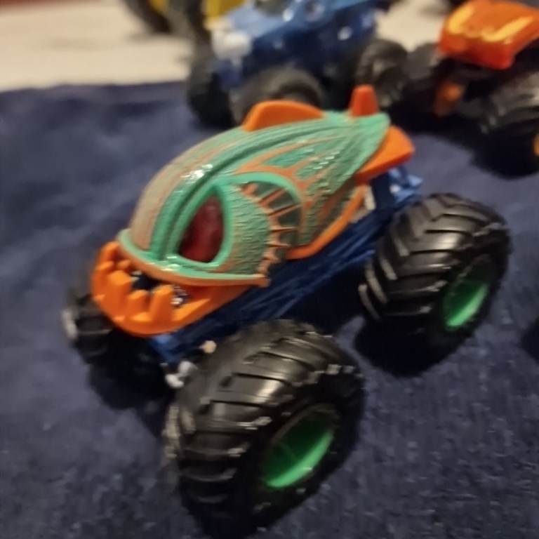 Open to sensible offers. Three oversized trucks and 7 regular sized monster trucks. All Hot Wheels brand.