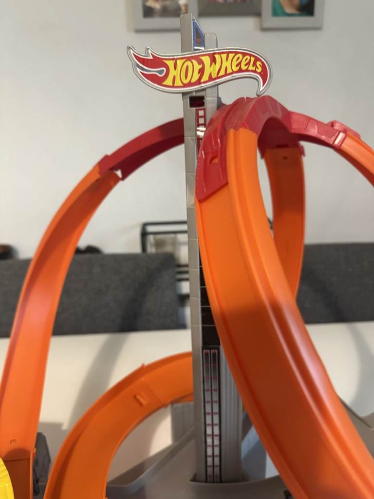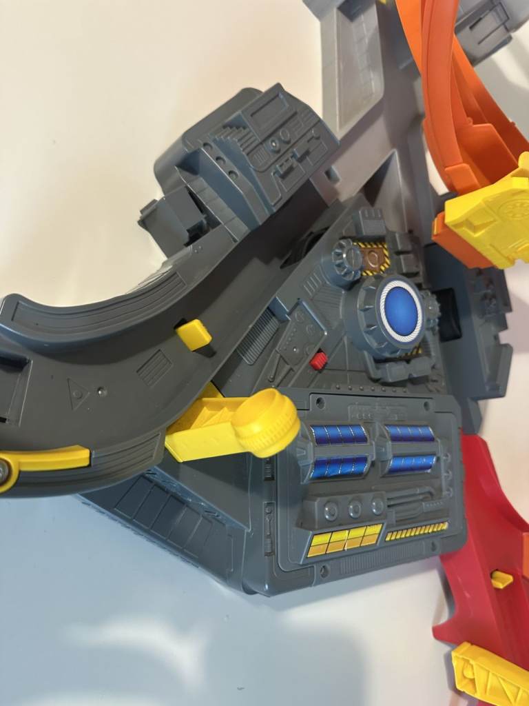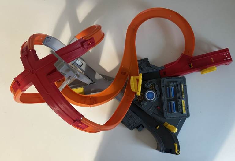 This has been in storage for a long time but still functions in terms of the motors and not broken parts. It launches cars simultaneously from opposite ends, the only trouble is, getting suitable cars is trial and error - too heavy they won't make it round the loops, too light, they will be launched off the track. For a fan of hot wheels, this should be no problem, otherwise, you may have to search for suitable cars.
