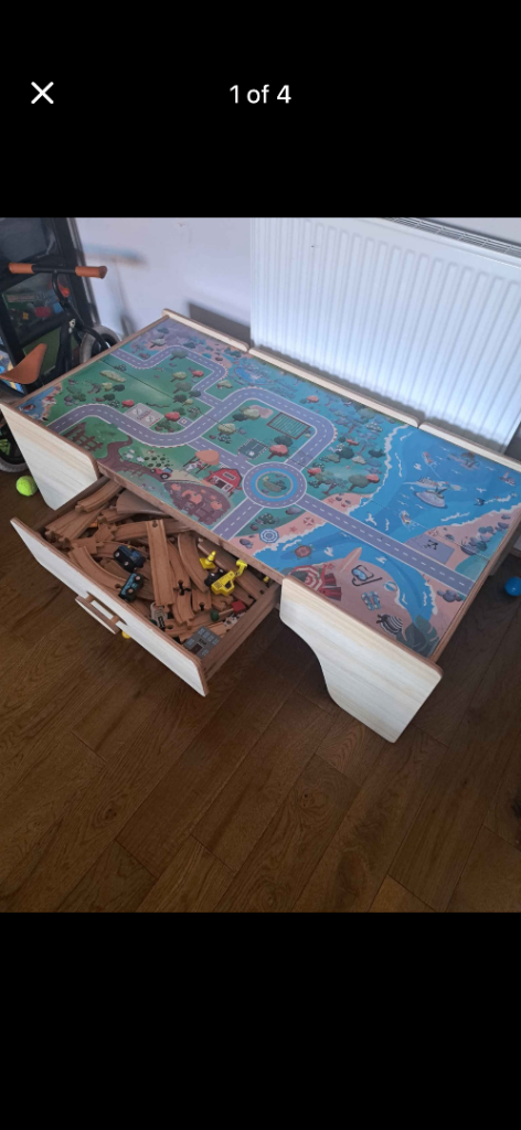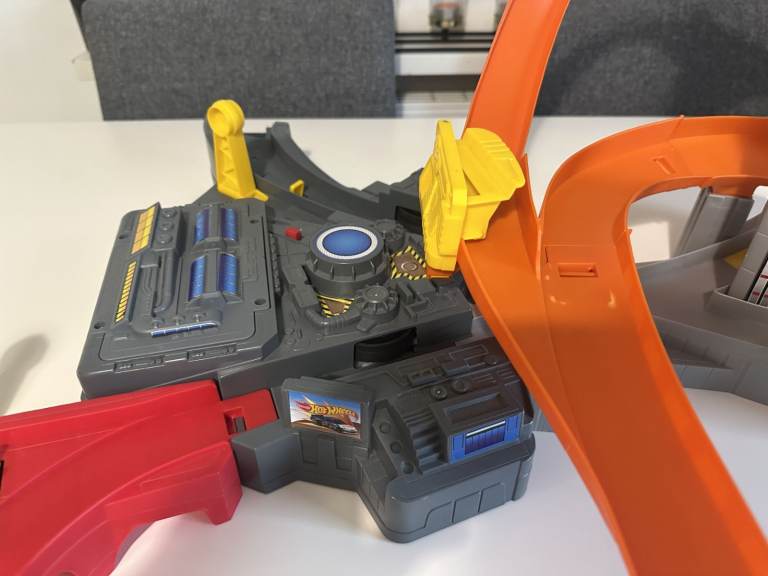 *One piece is missing, it is the piece at the start of the 3rd picture, it's a curve that you can line multiple cars on and launch several one after another. However, it still functions, you will just have to place the car on each time*