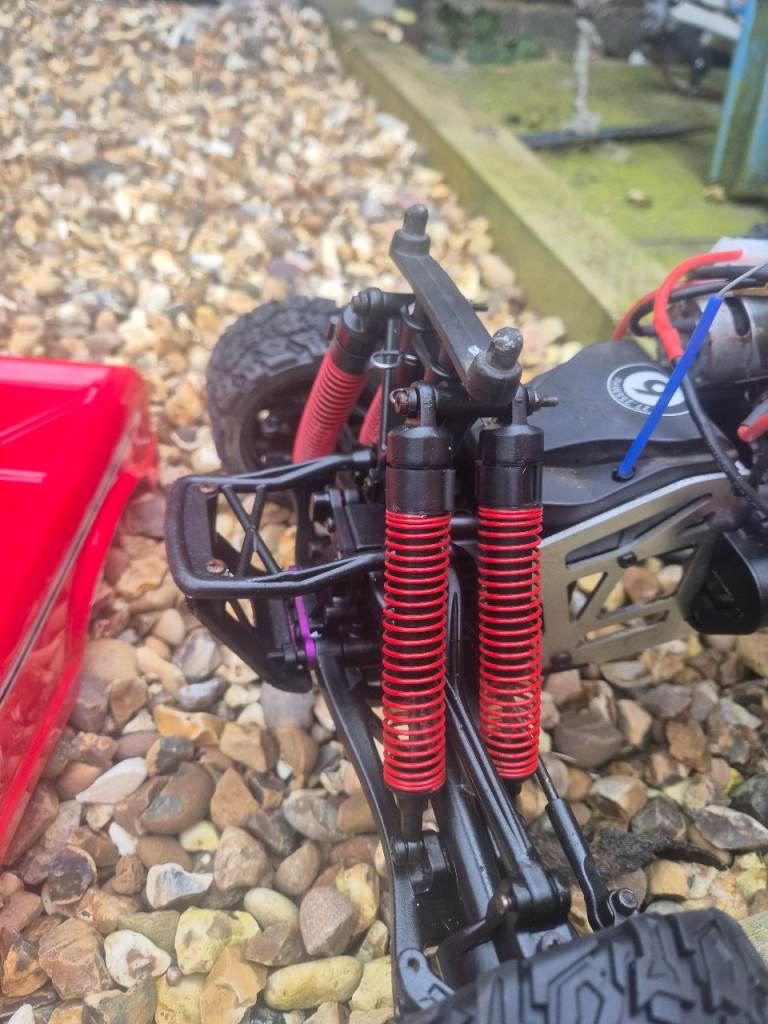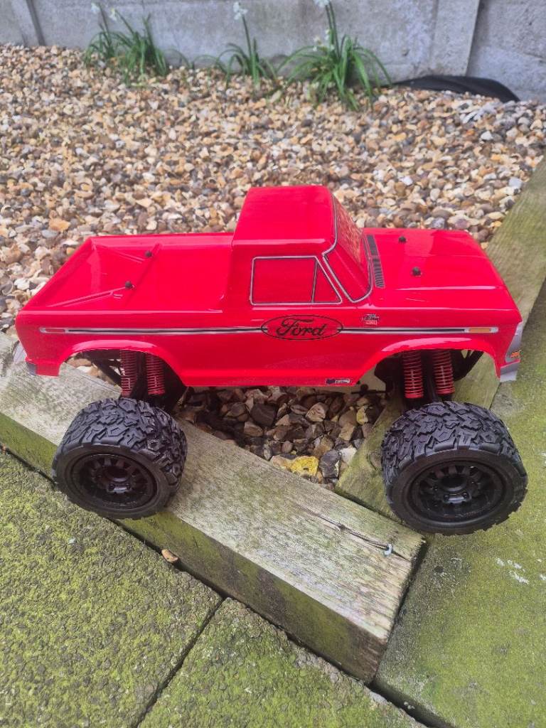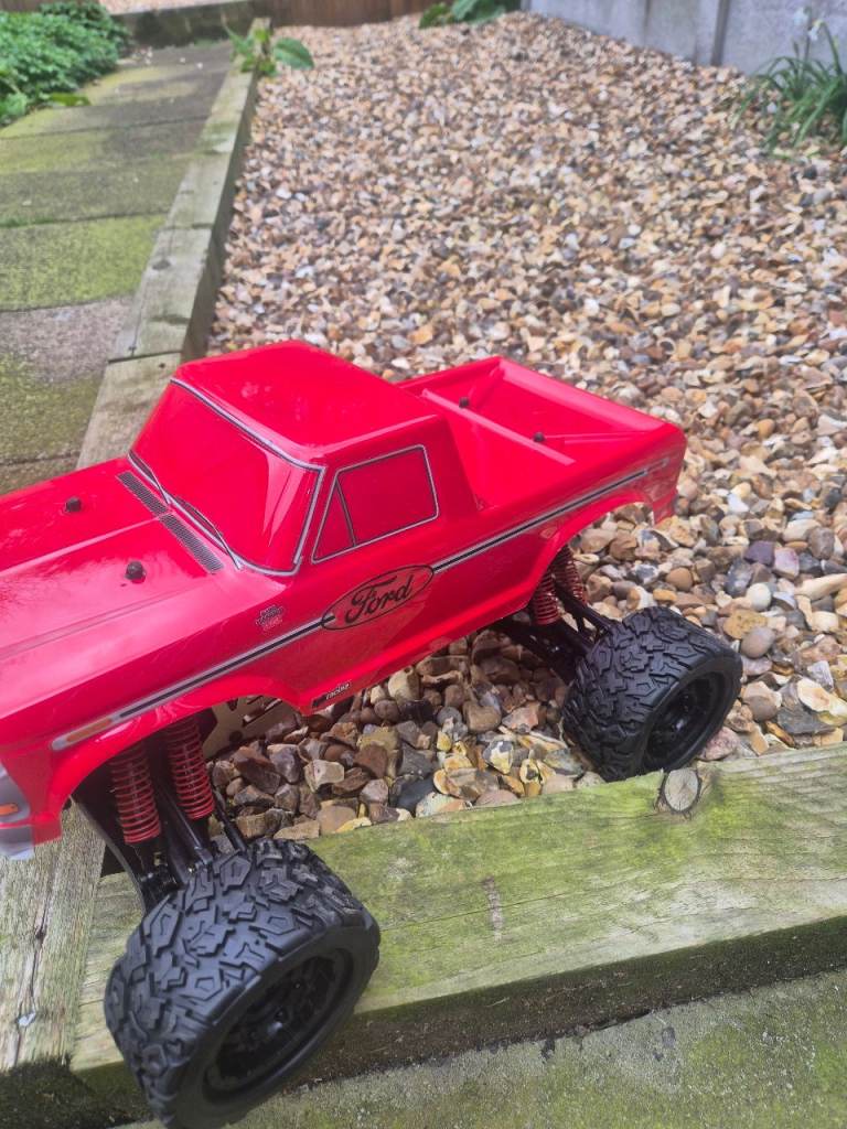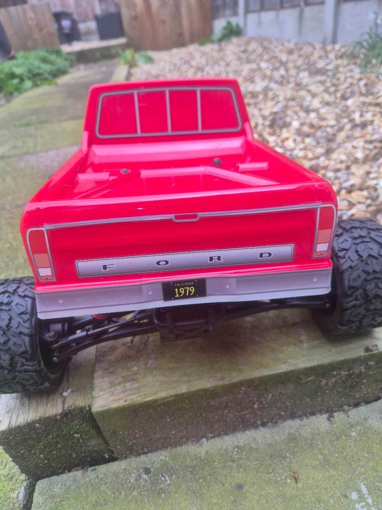 Hpi E savage with a brand new body, new tyres and wheels, new oil in all 8 shocks, new diff oil, and a hobbywing 880 esc, this twin motor truck pulls wheelies for fun