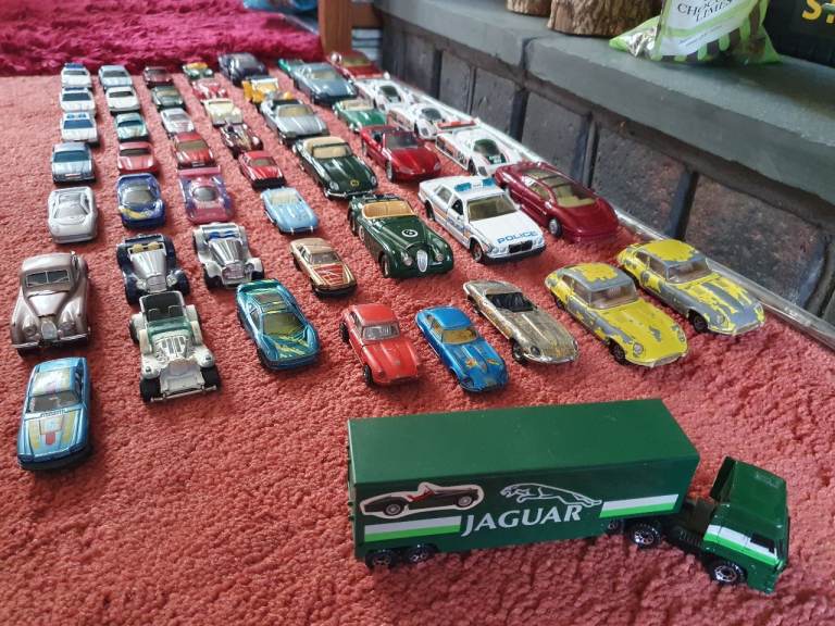 A great one off collection of 48 jaguar cars, 70S, 80S, some rare, and a very rare Jaguar arctic lorry, Matchbox, Corgi etc, in various sizes, a lot of these are in pretty good condition for their age, great collection for a silly price, grab a bargain, Would prefer collection in person but would consider p/p for £7.99.