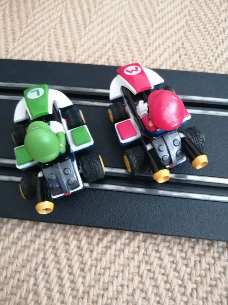 Luigi's car is missing one exhaust pipe, and there is one threaded piece missing from a track support (see photos) , but otherwise, all parts are there and working.