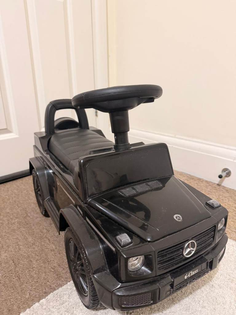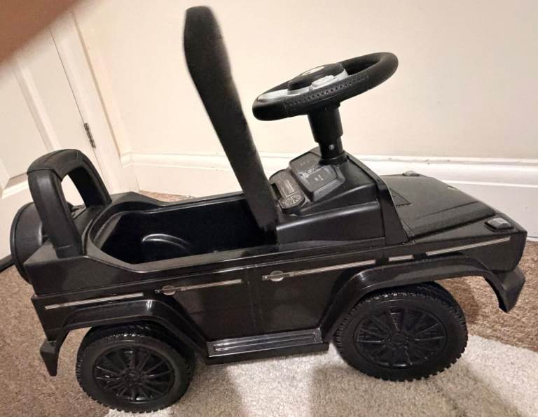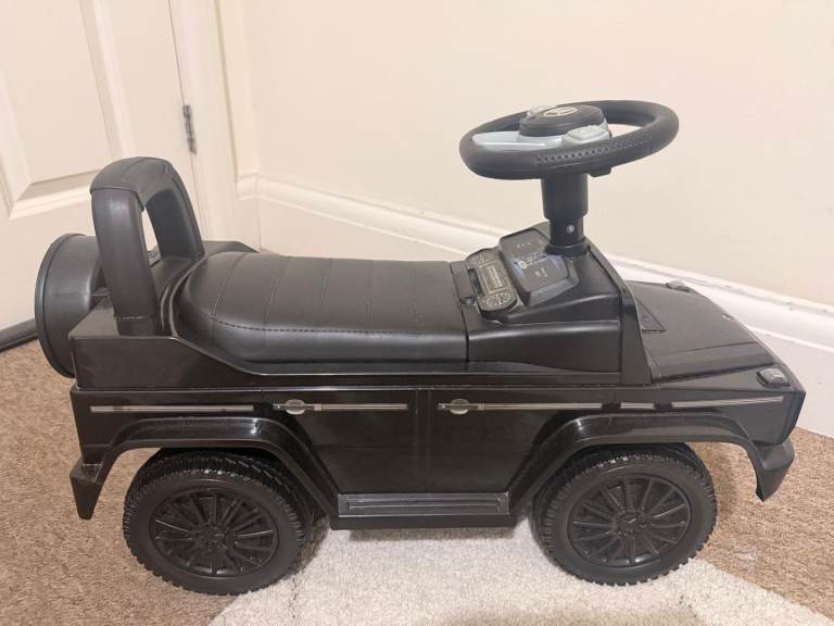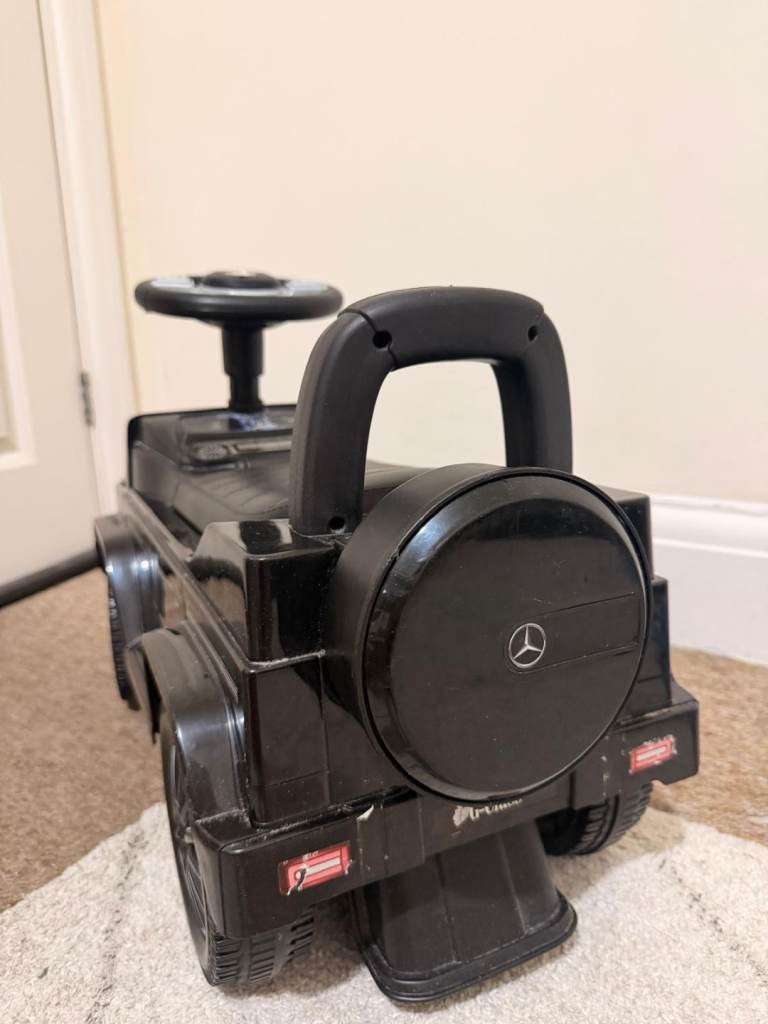 The Mercedes Benz G350d Ride On toy car has a high backrest to keep kids supported as they push themselves along. The detailed dashboard lets little ones imagine they're behind the wheel of their very own car. Lift the seat of this ride-on car to discover a handy storage compartment that's perfect for taking toys on a spin.