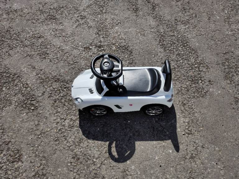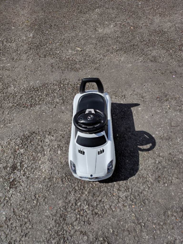 Mercedes push along car in white.
