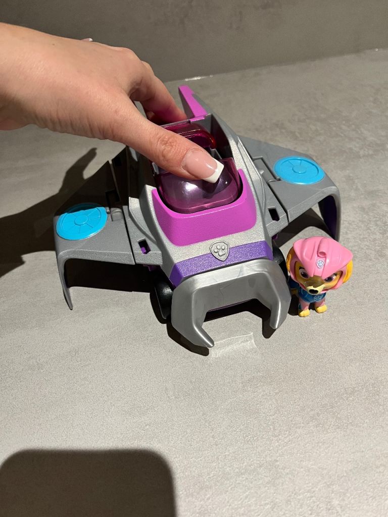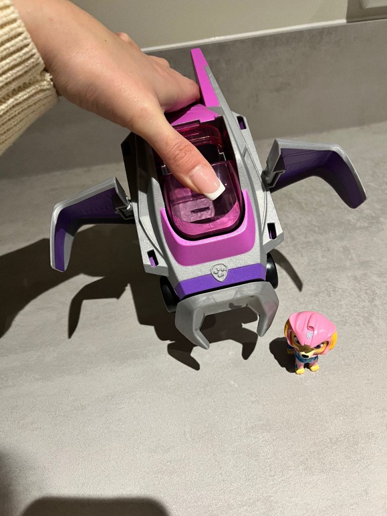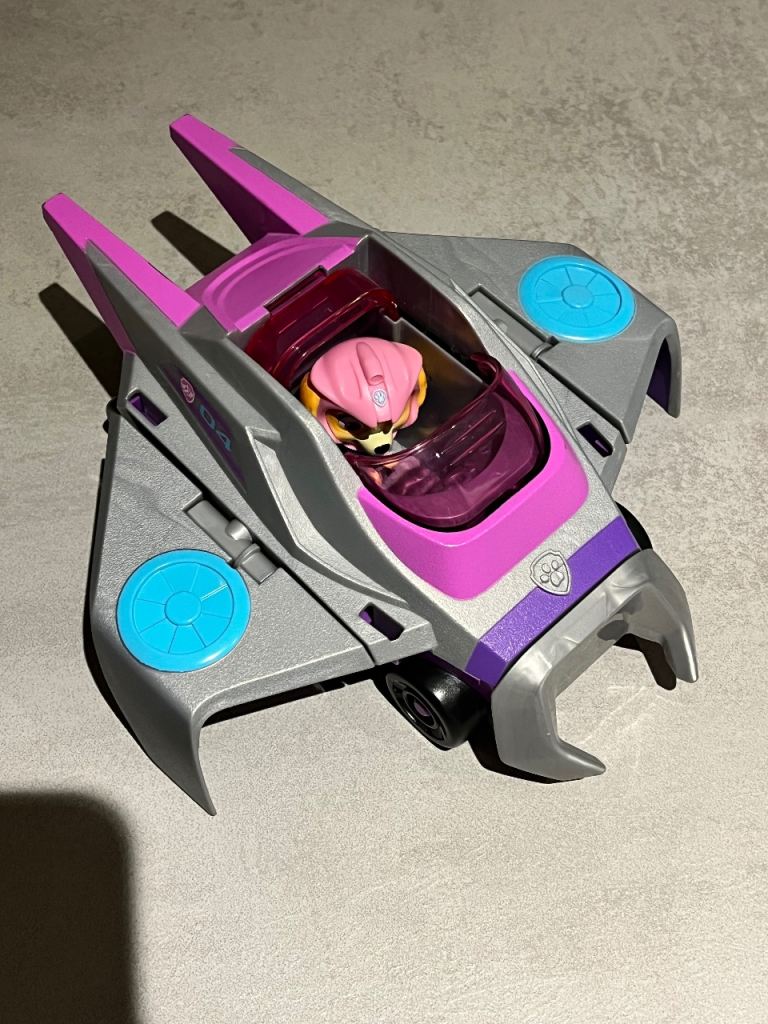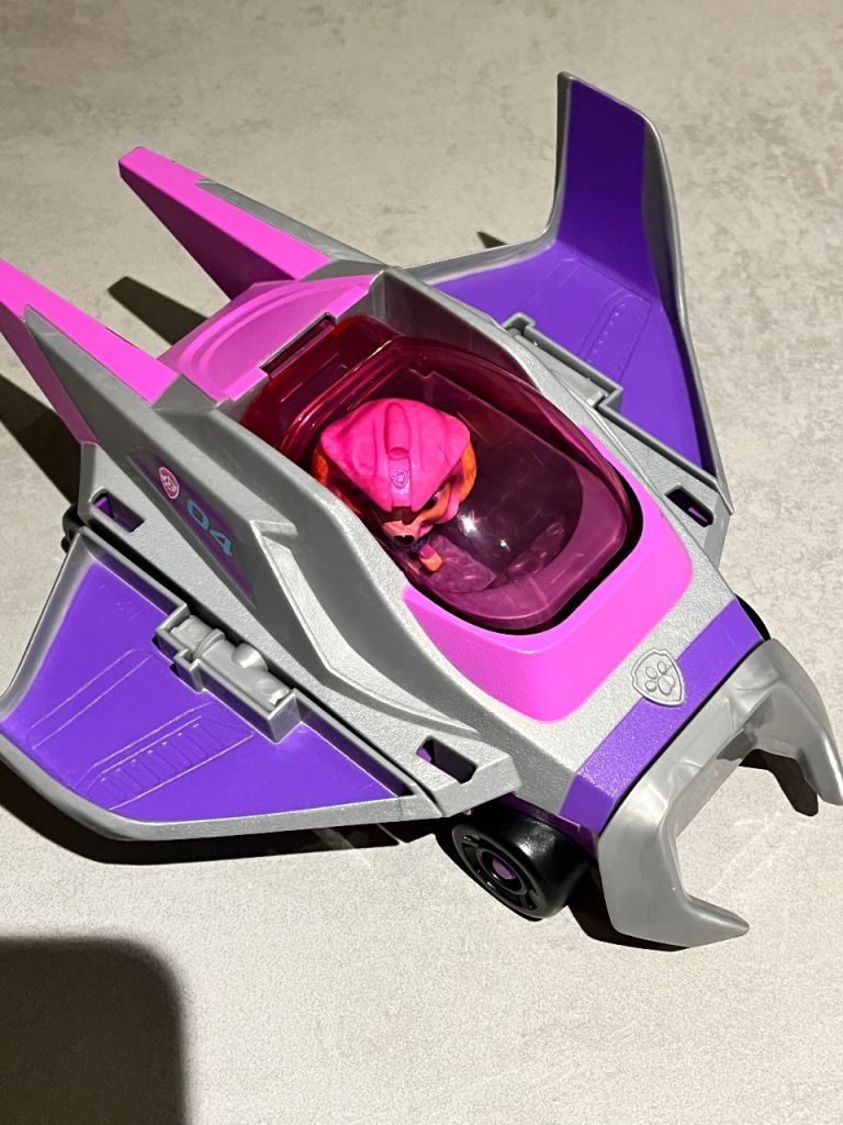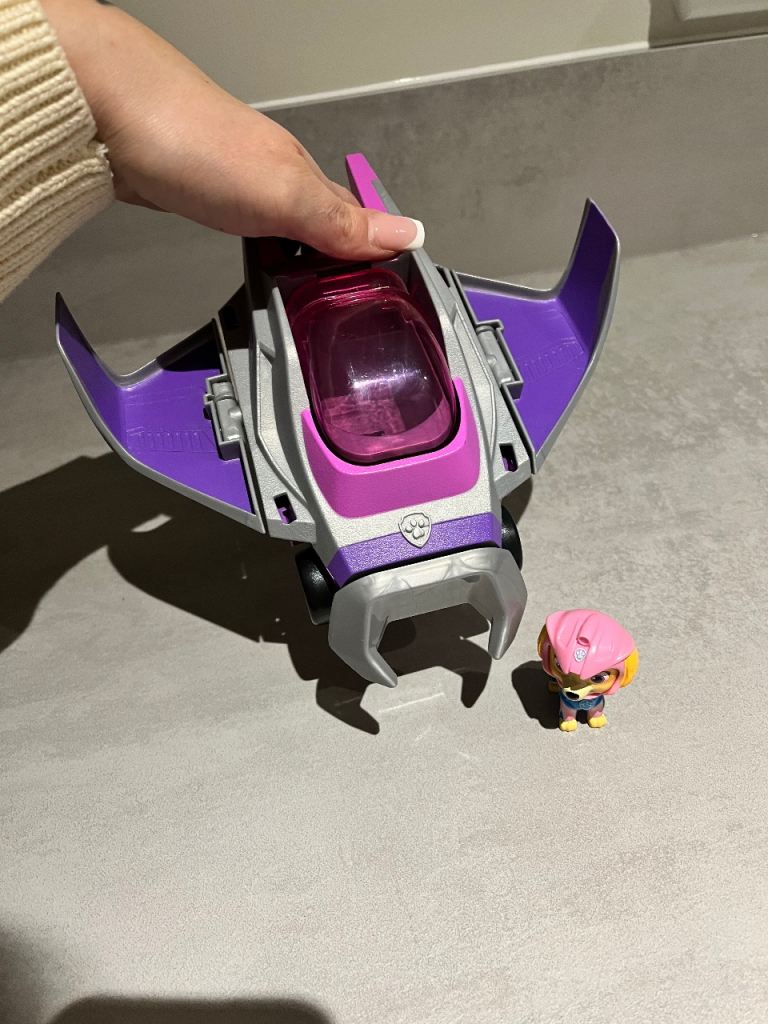 This is a PAW Patrol Aqua Pups Skye Transforming Manta Ray Vehicle. It comes with a collectible Skye action figure wearing her pink Aqua Pups wetsuit. The vehicle transforms, activating a wing-flip feature when the canopy is slid shut. Excellent condition. Child outgrown. From a smoke free home. £5