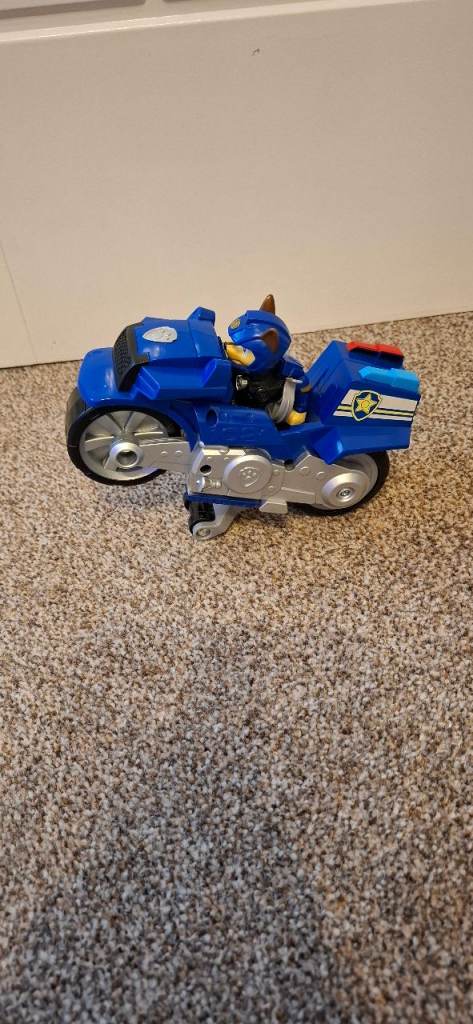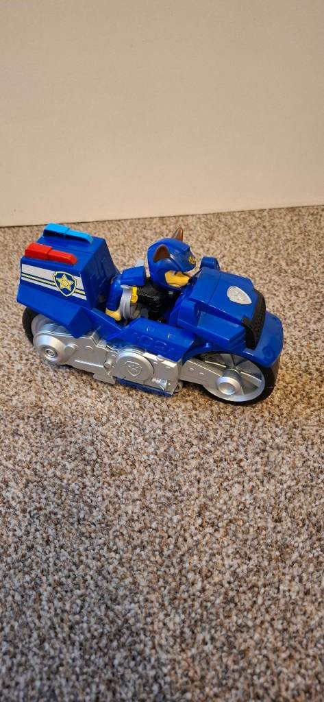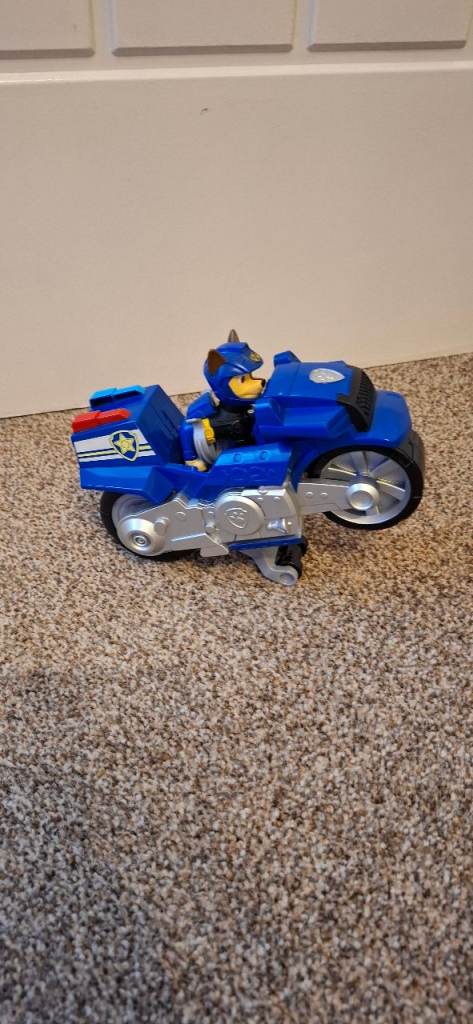 Posting for 1+ yearsPaw patrol chases pull back motorcycle with figure