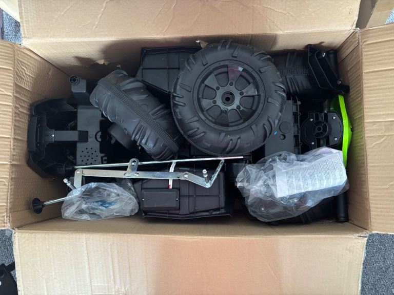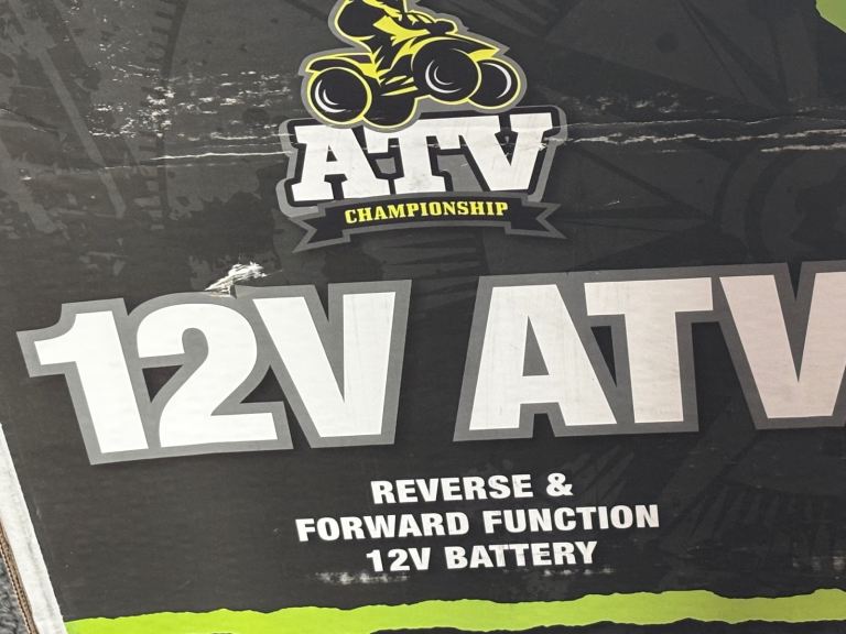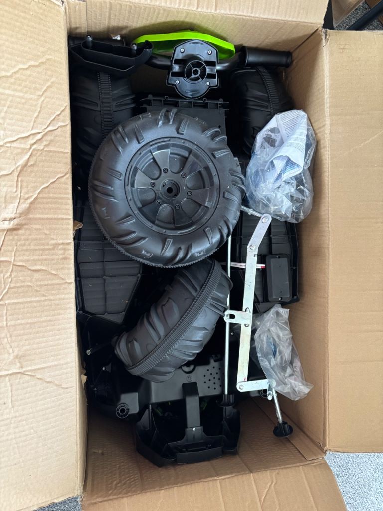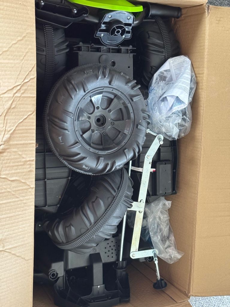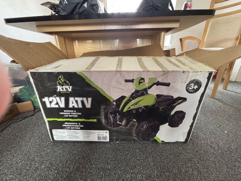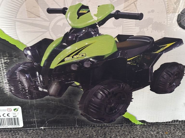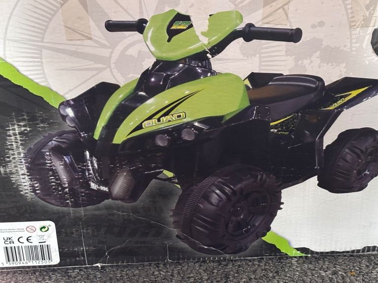 *For Sale* Unisex Quad Bike Electric 12V ATV 4 Wheel (3 Years +) with Charger. Goes Forward & Reverse. For Outdoor Use. It’s been kept in my Garage in it’s original sealed box for quite some time. Recently opened the box to see its current condition and it’s all in tact and completely fine, other than the metal has slightly Tarnished (but it’s not rusty nor corroded at all). Bought this for my Youngest Son from Smyths Toys Superstore, Rayleigh Weir a few Christmas’s ago. Its box has some slight damage and my Son drew over the box before we recently moved home, but still in tact. Cost me £150. Selling this for £65.00.