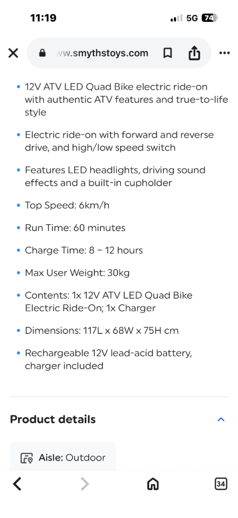 *This Quad Bike is very similar to the Red Quad Bike on Smyths Toys Superstore Website (as seen in the last few Photo’s)*