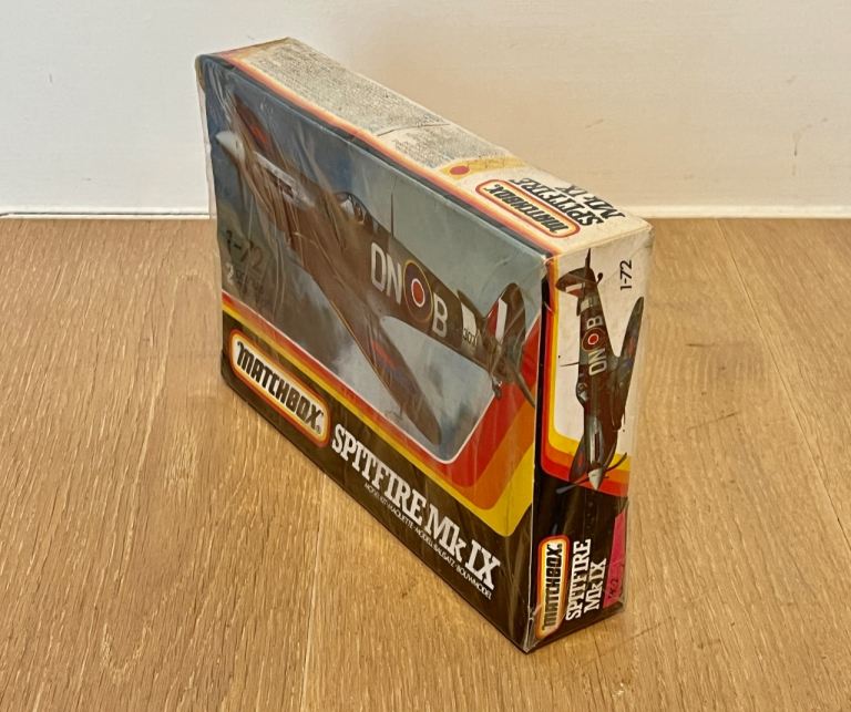 A rare Matchbox Spitfire MkIX plastic model kit in it’s original sealed box. Box is a bit dented.