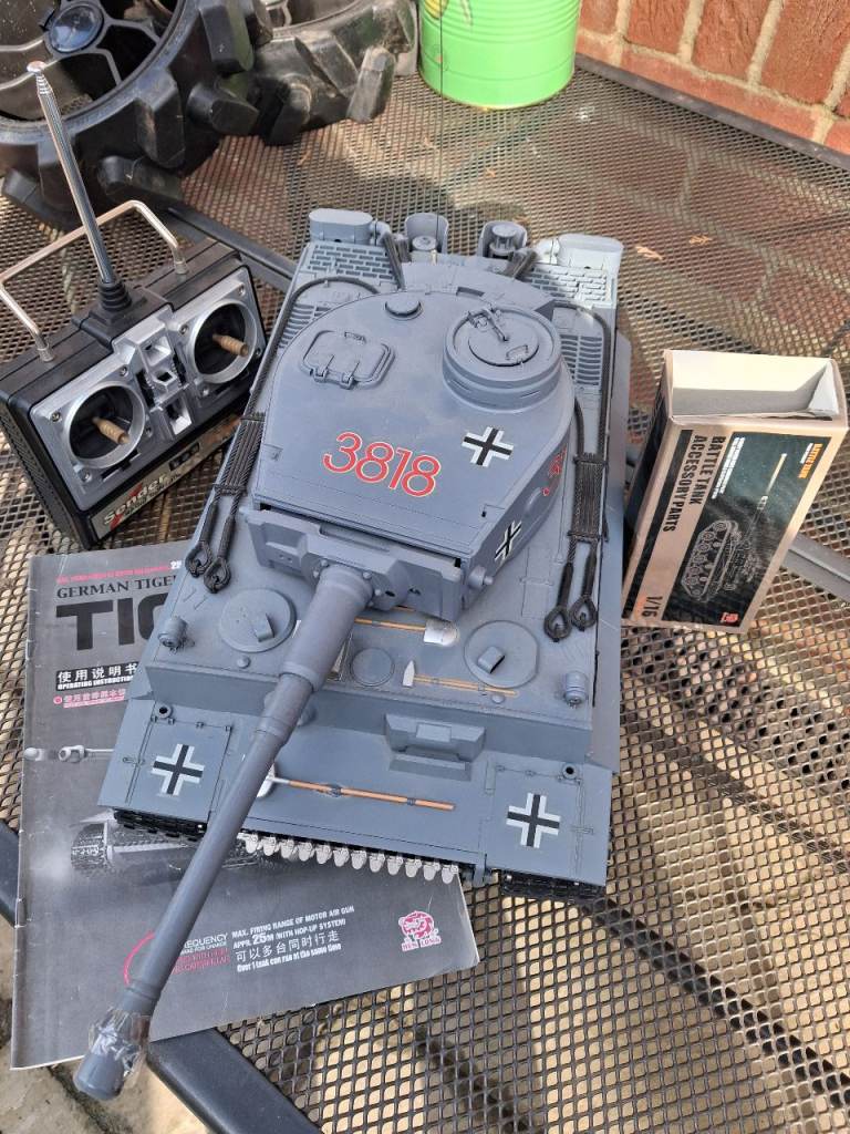 SELECTION OF REMOTE CONTROLLED VEHICLES. CARS ARE NEW AND UNUSED. TANK HAS BEEN USED.