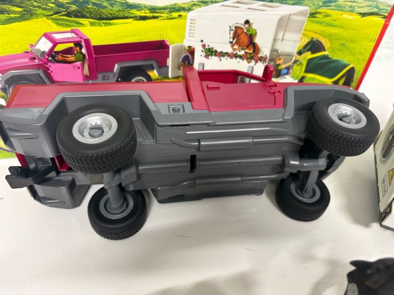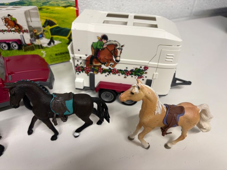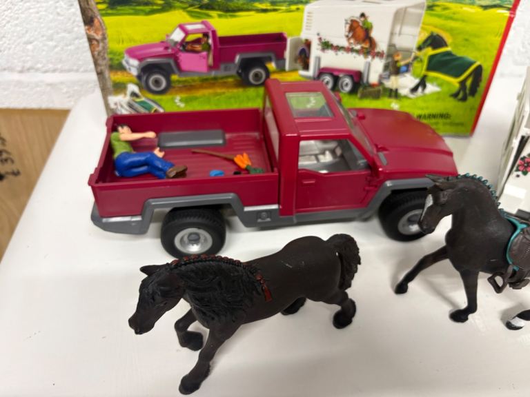 Schleich Horse Club Pickup and horse box with extra horses and additional Playmobil Set.
