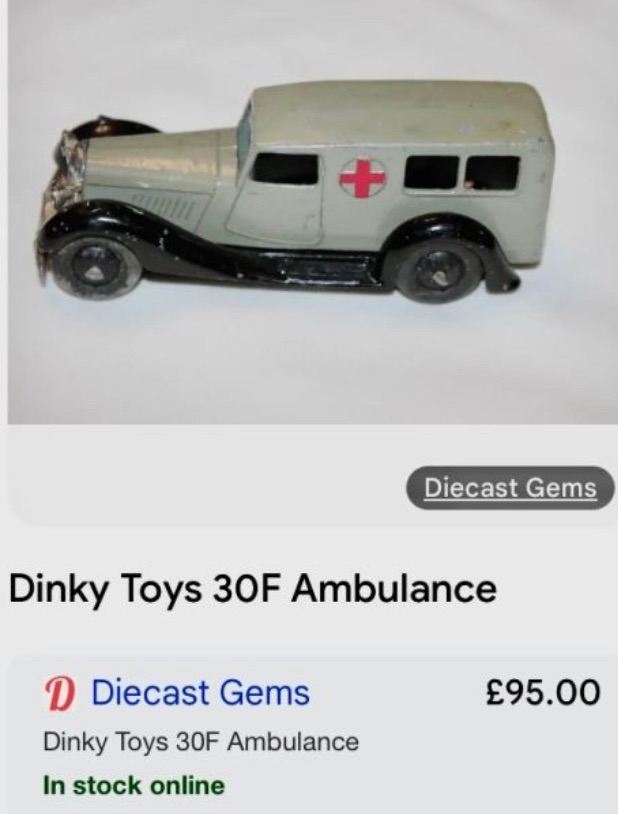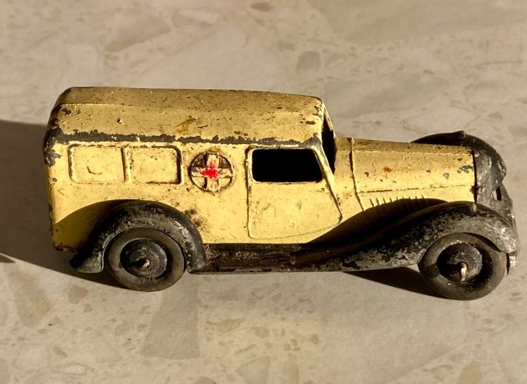 Vintage Dinky Toy 30F Yellow Ambulance (c1940’s), in played with condition, with all tyres.