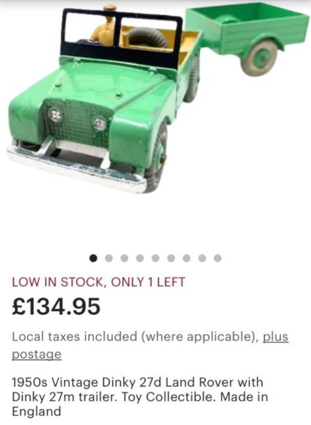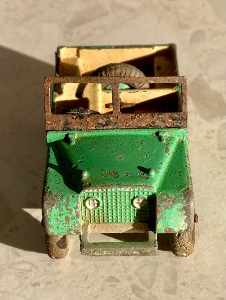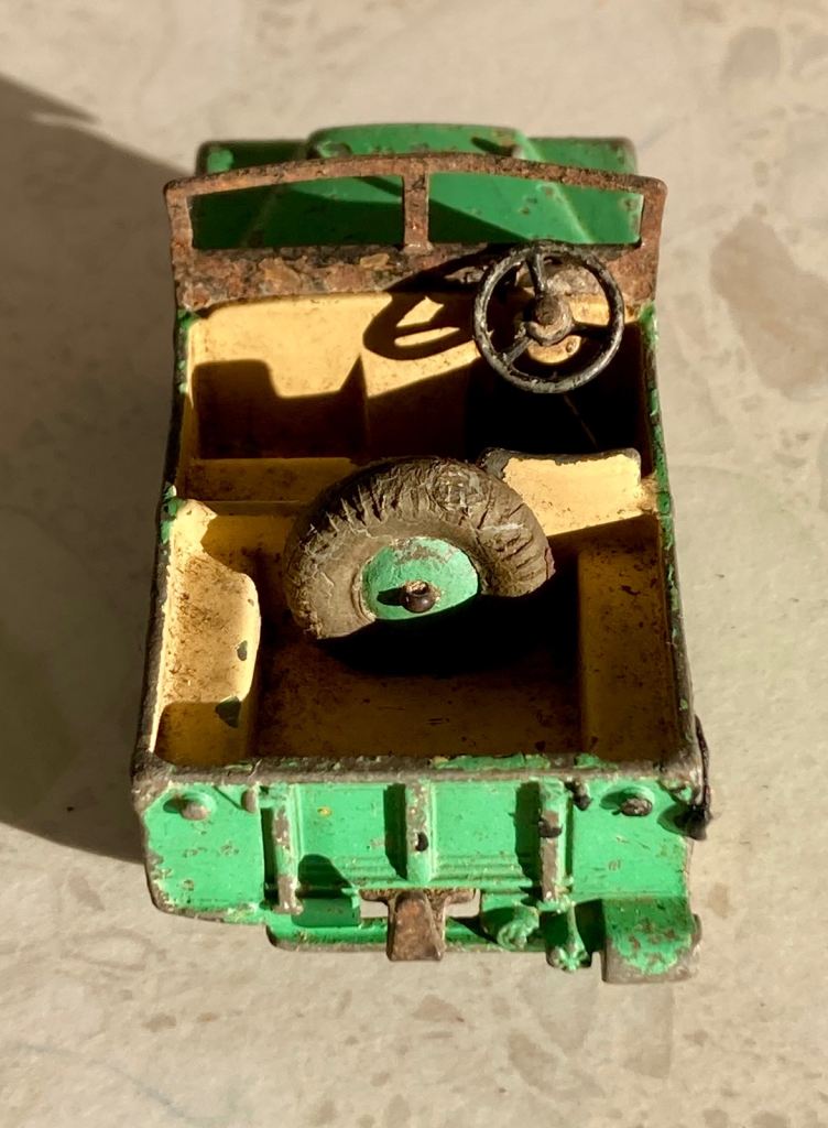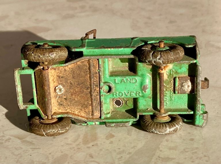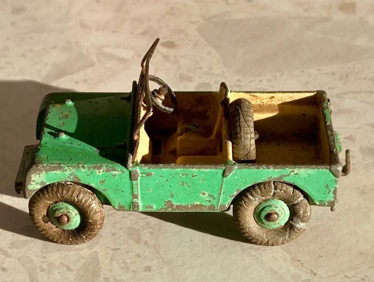 Vintage Dinky Toy 27d Land Rover; (c1950’s) played with condition, with all tyres; no trailer.