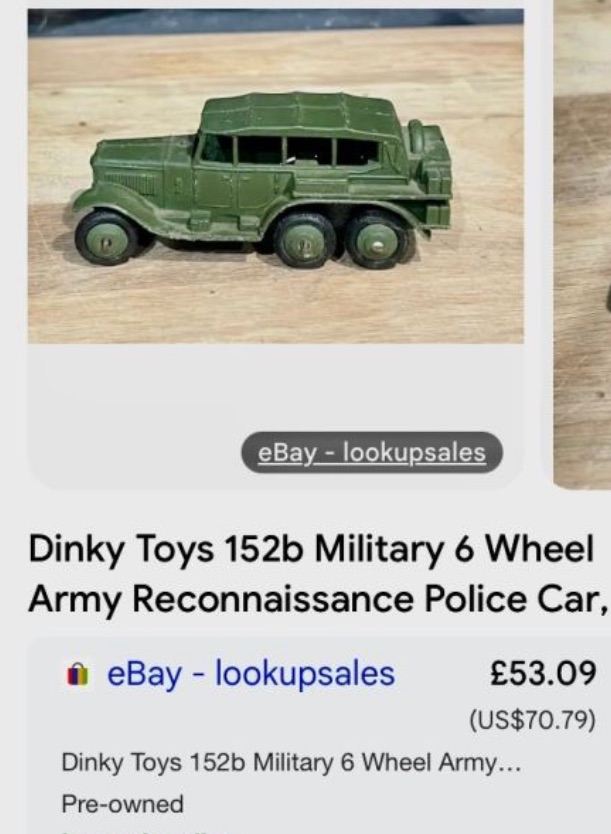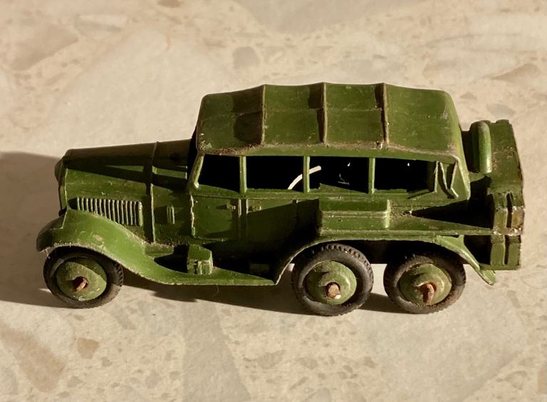 Vintage Dinky Toy 152b, Army 6 Wheel Reconnaissance Vehicle; in played with condition, with all tyres.