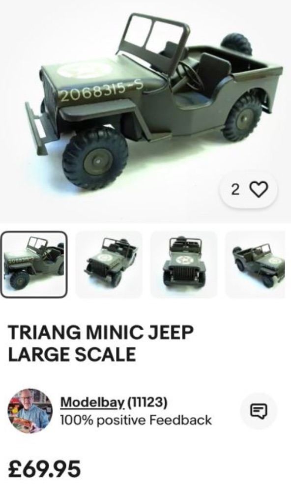Vintage Triang Minic Metal Toy Jeep - Green, Fair Condition