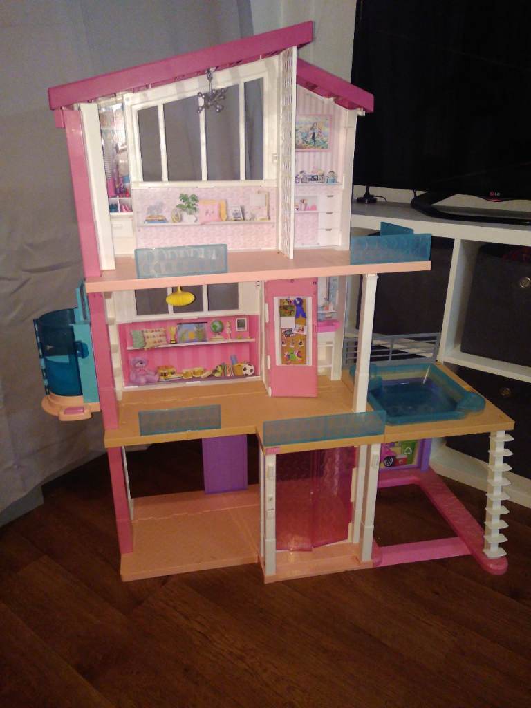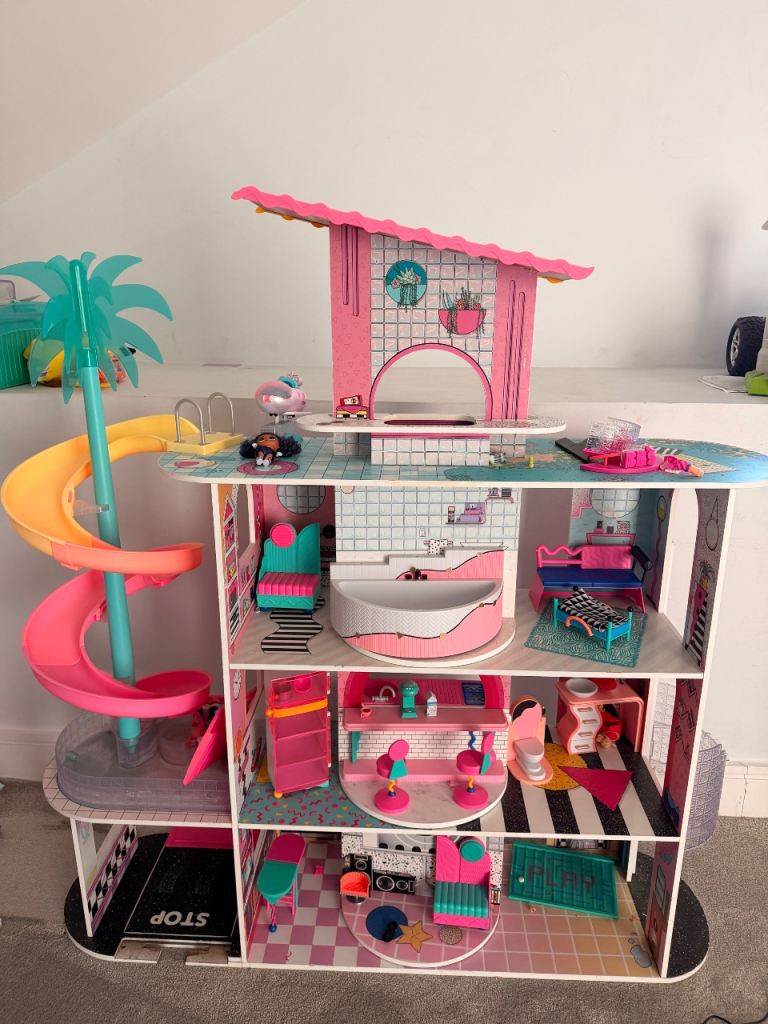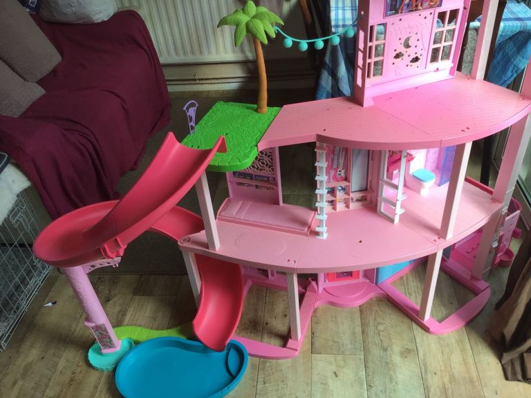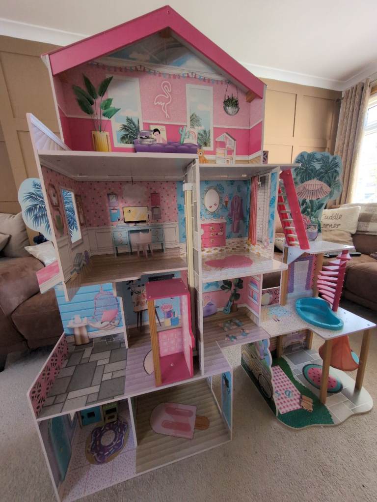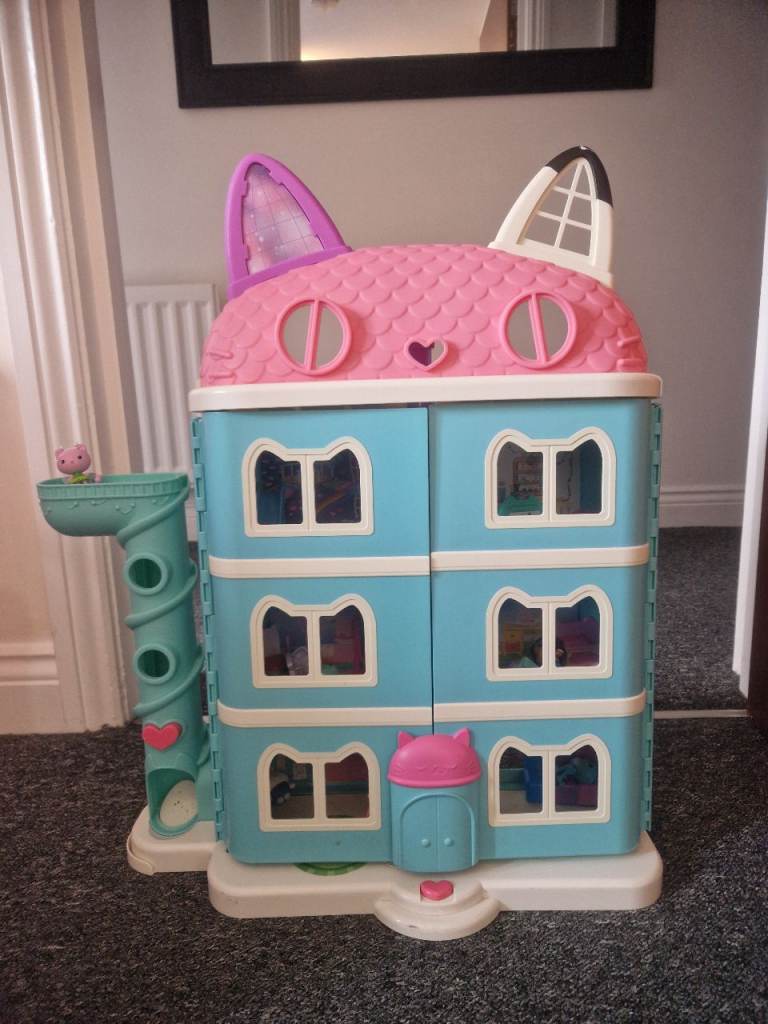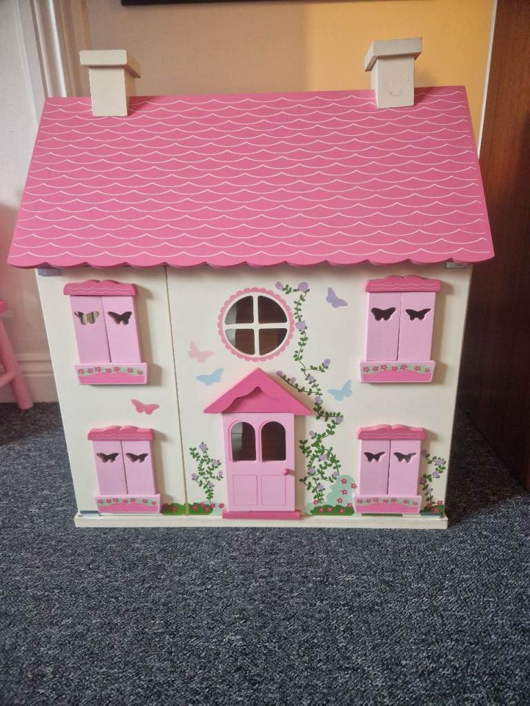 Huge Robert Stubbs 5 foot wide x nearly 6 foot tall Tudor dolls house the top section comes off the middle section then the 2 boxes it stands on come separately. I collected it in 2 trips in my Nissan xtrail so will fit in a small van.