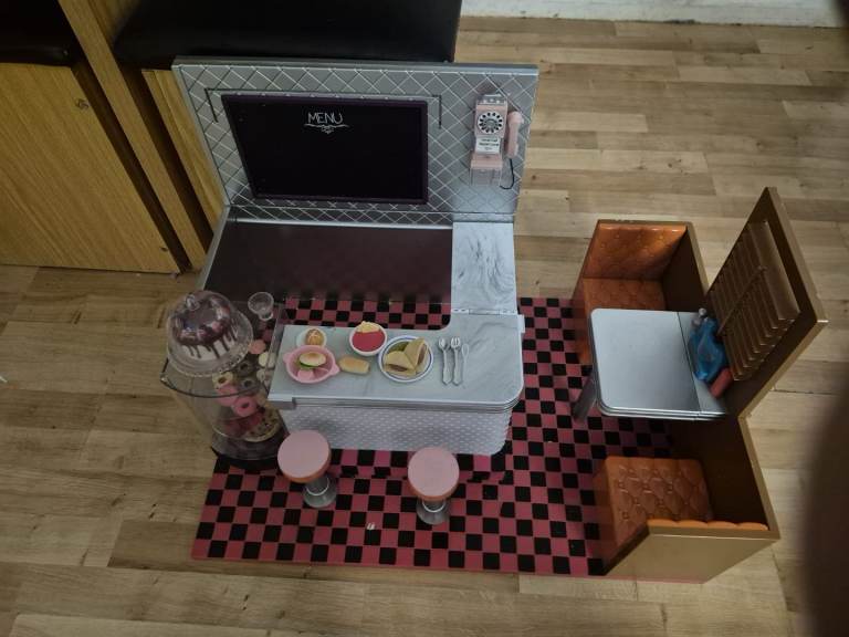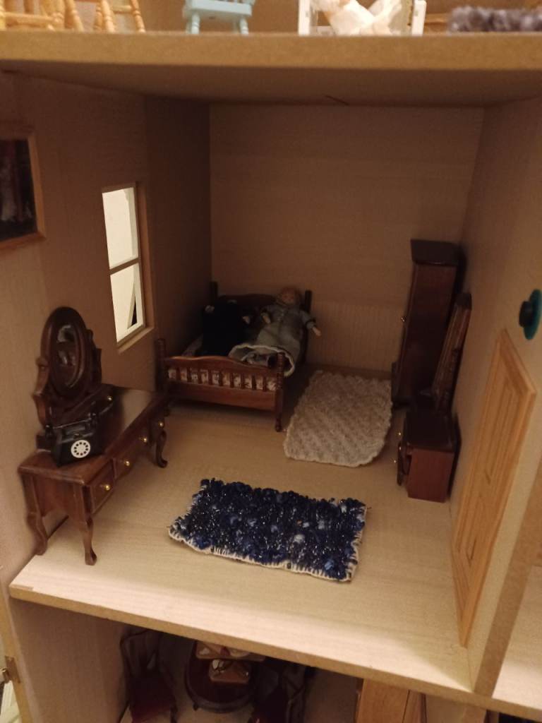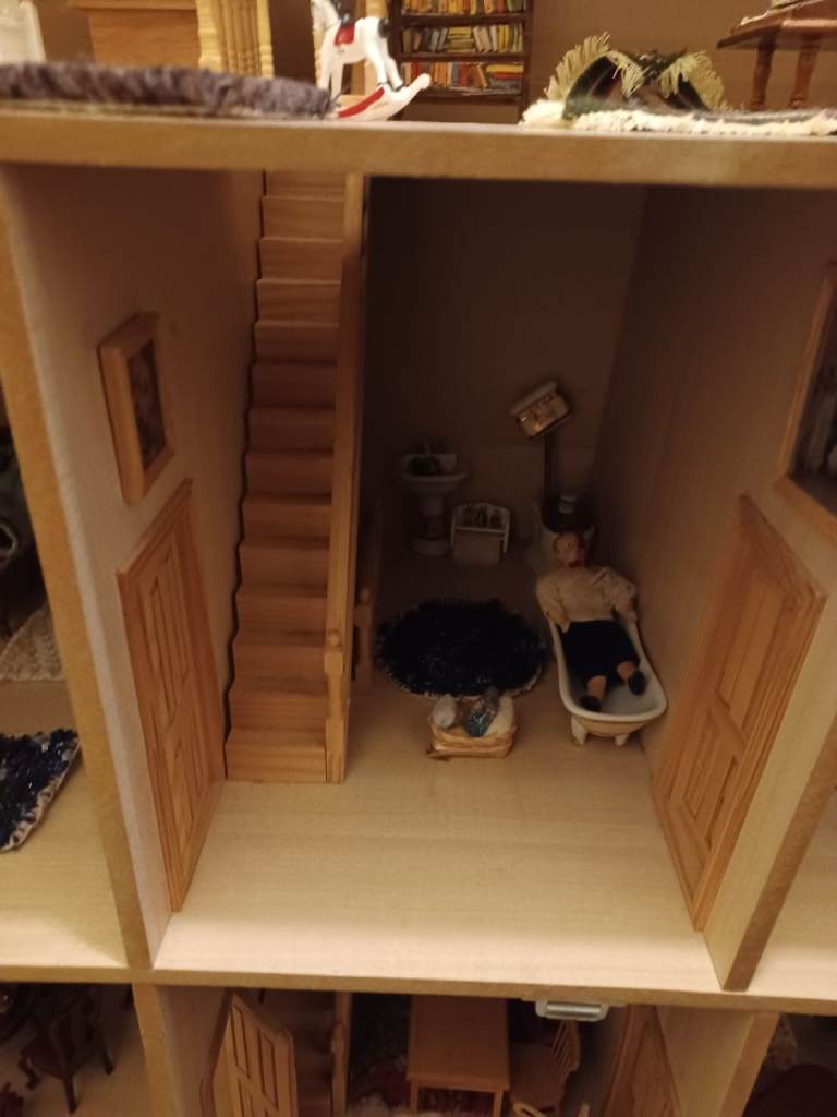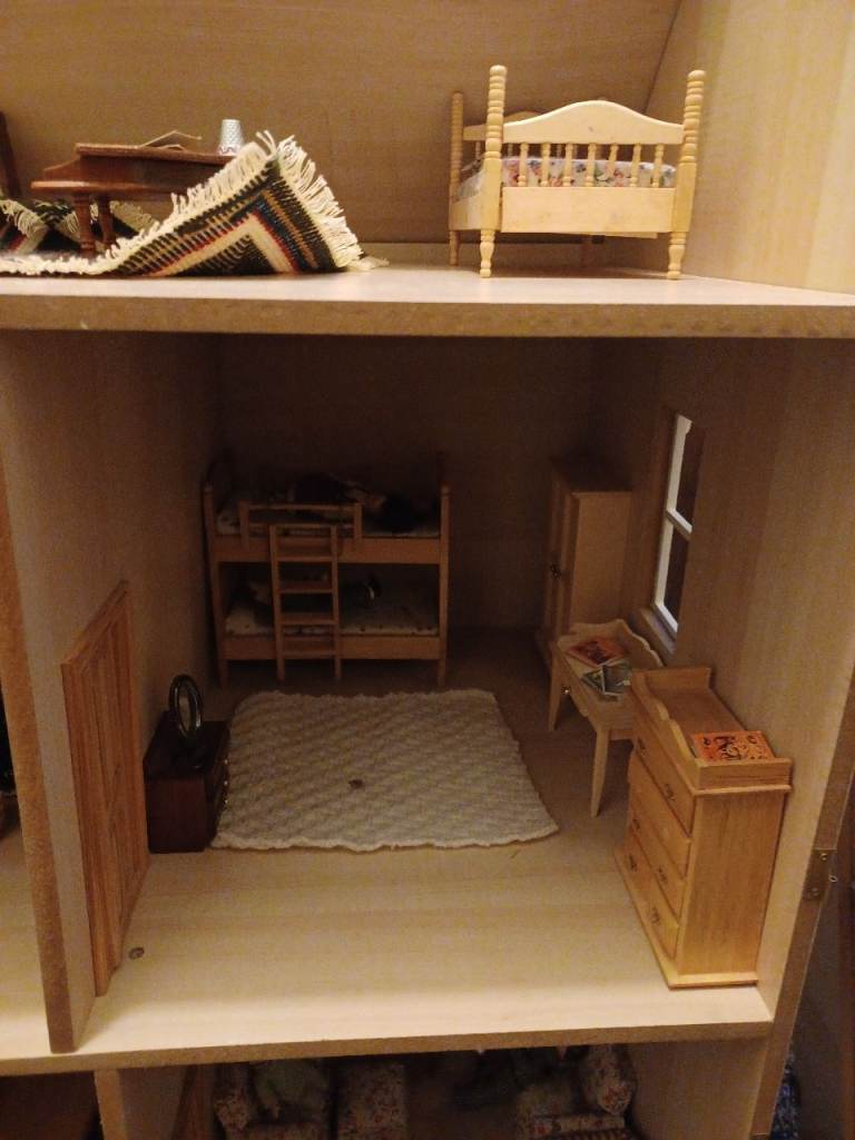 American-style 1920s-30s dolls house with 3 floors (loft, first floor and ground floor), furniture, and 11 dolls (grand/parents, children and baby). Roof and doors are detachable and have come off but could be attached. There are lights and chimneys which could be attached. There is also carpets (from our own house) for a few rooms which I can give with the house if wanted. It's been well-played with, however, still plenty of life left. Recommend a viewing. Needs a car to transport it.