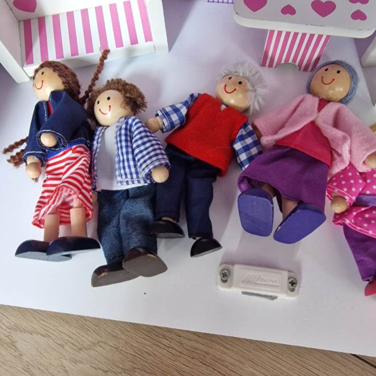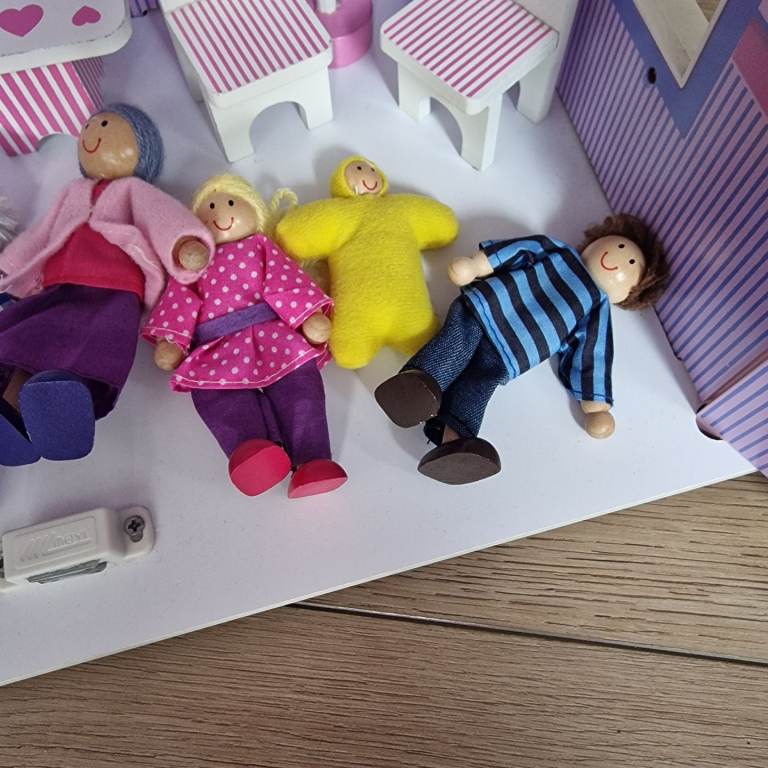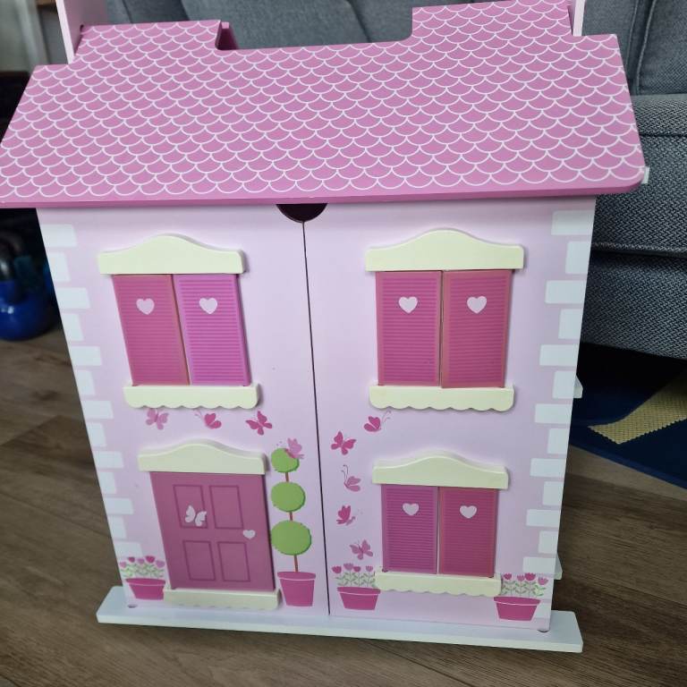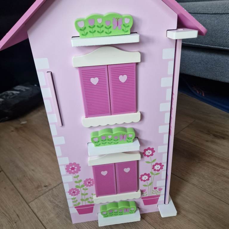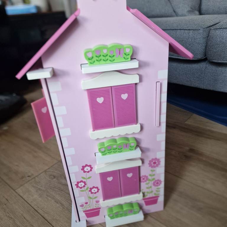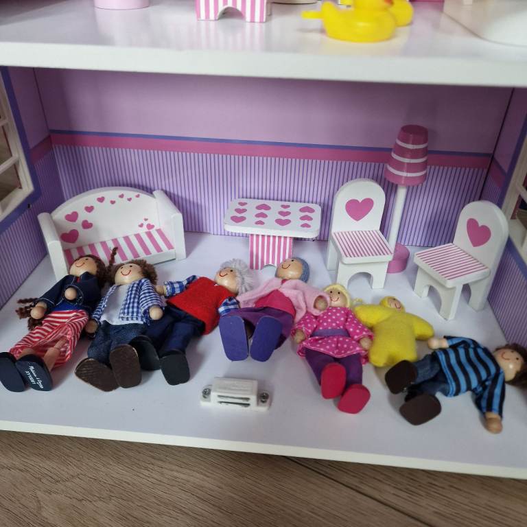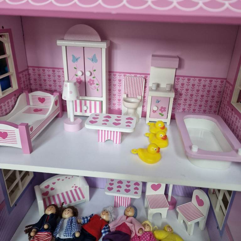 A beautiful and immaculate doll house with contents. Melissa and Doug dolls. Rarely played with. This has been really well looked after from a smoke free and pet free home.