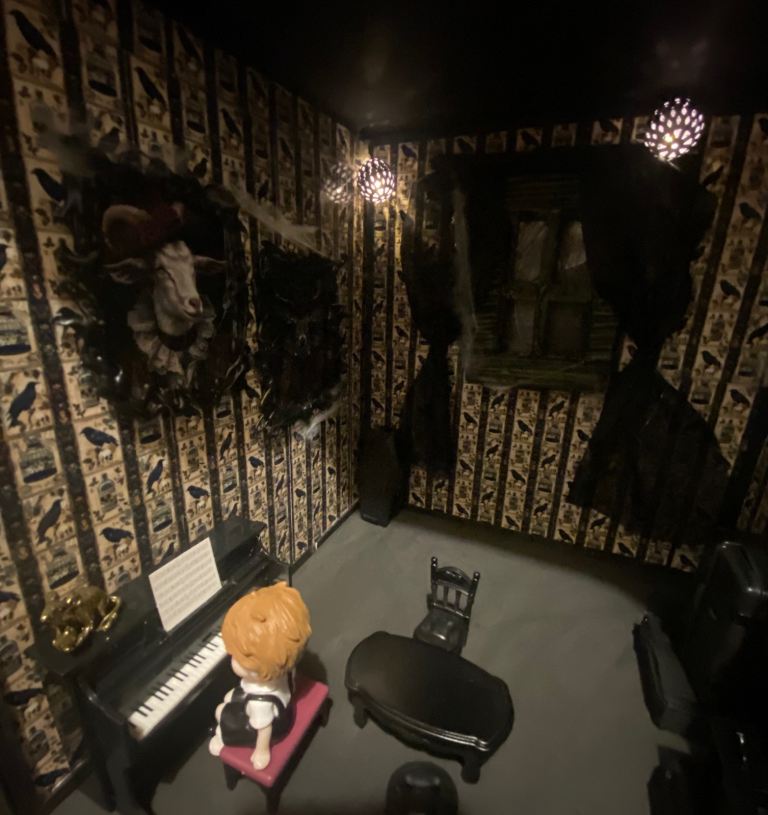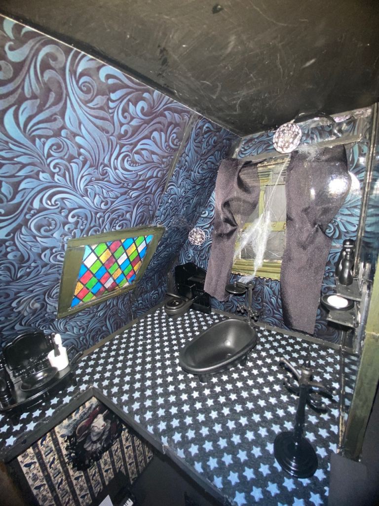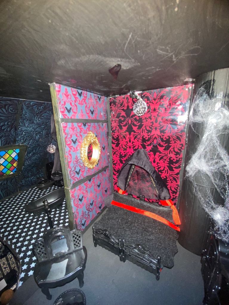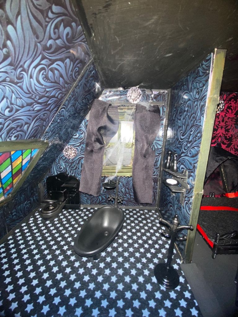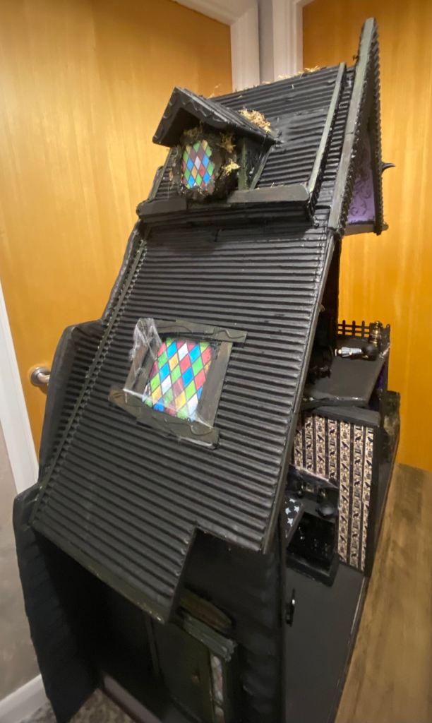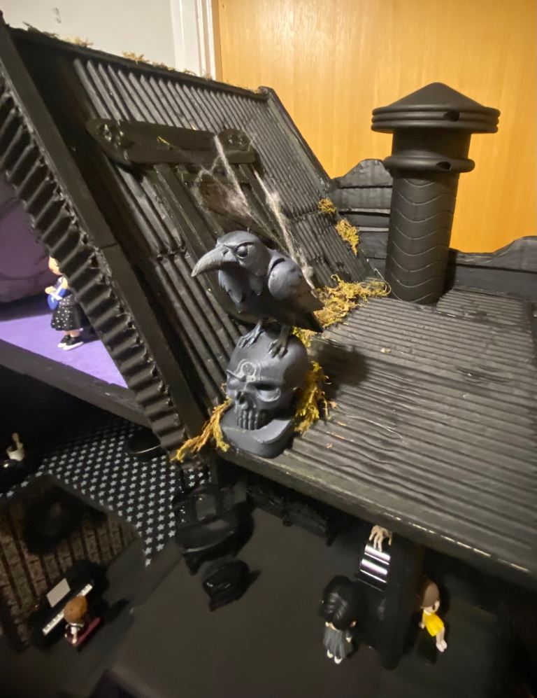 A striking, fully handmade Wednesday Addams–inspired gothic dollhouse, built as a unique one‑off piece.