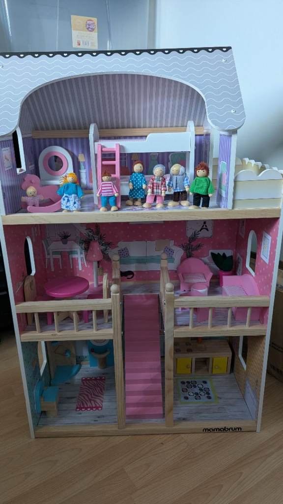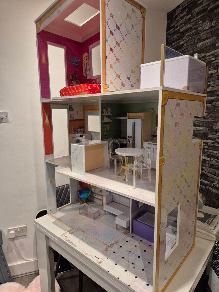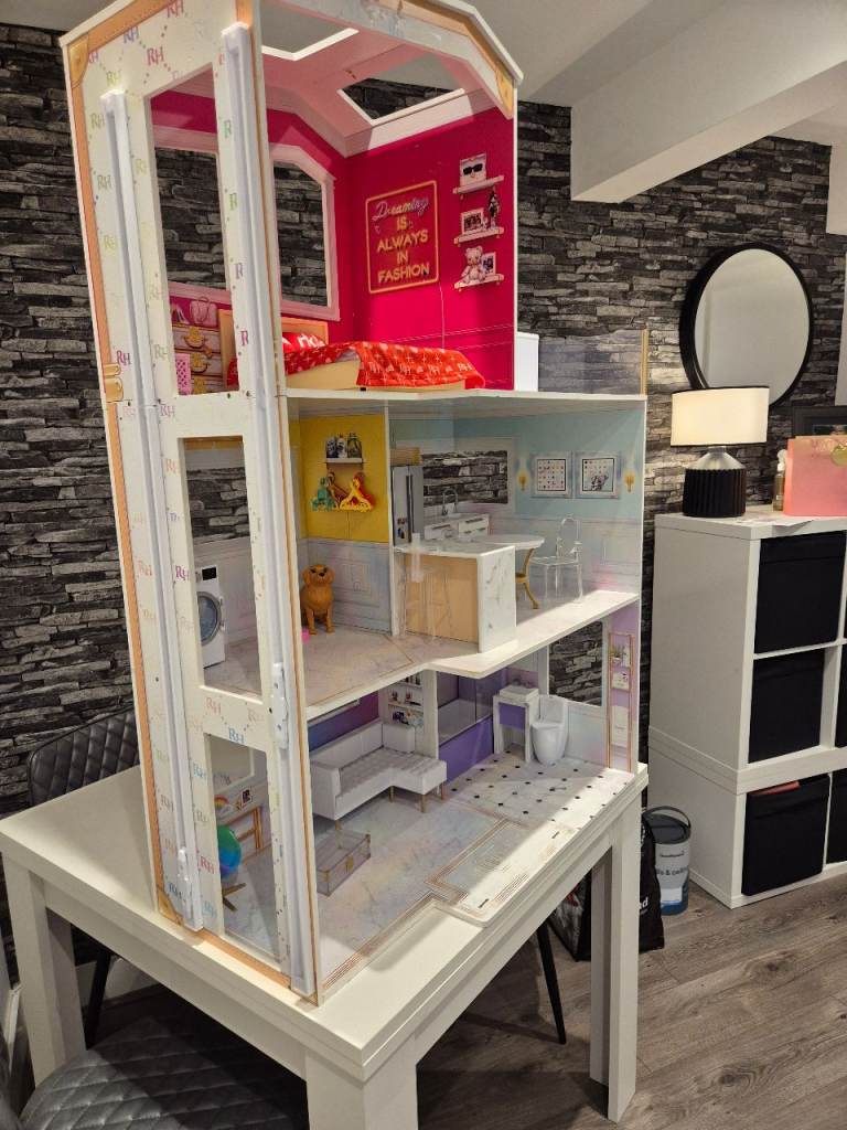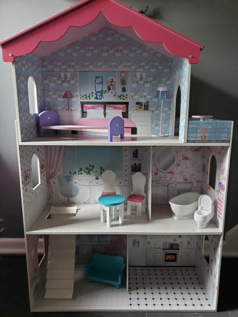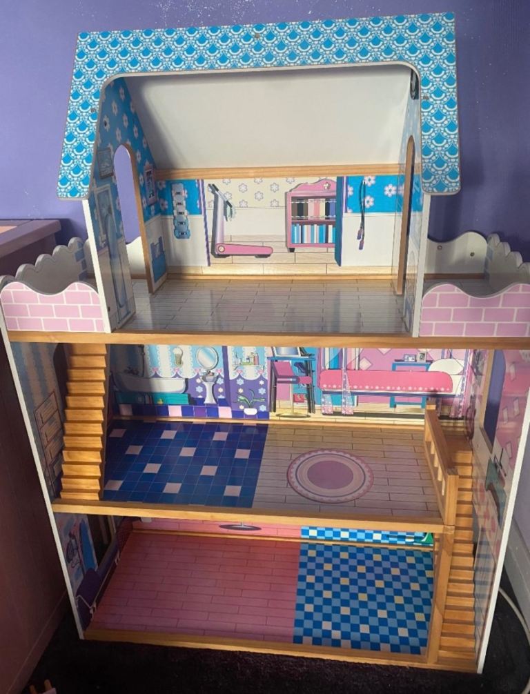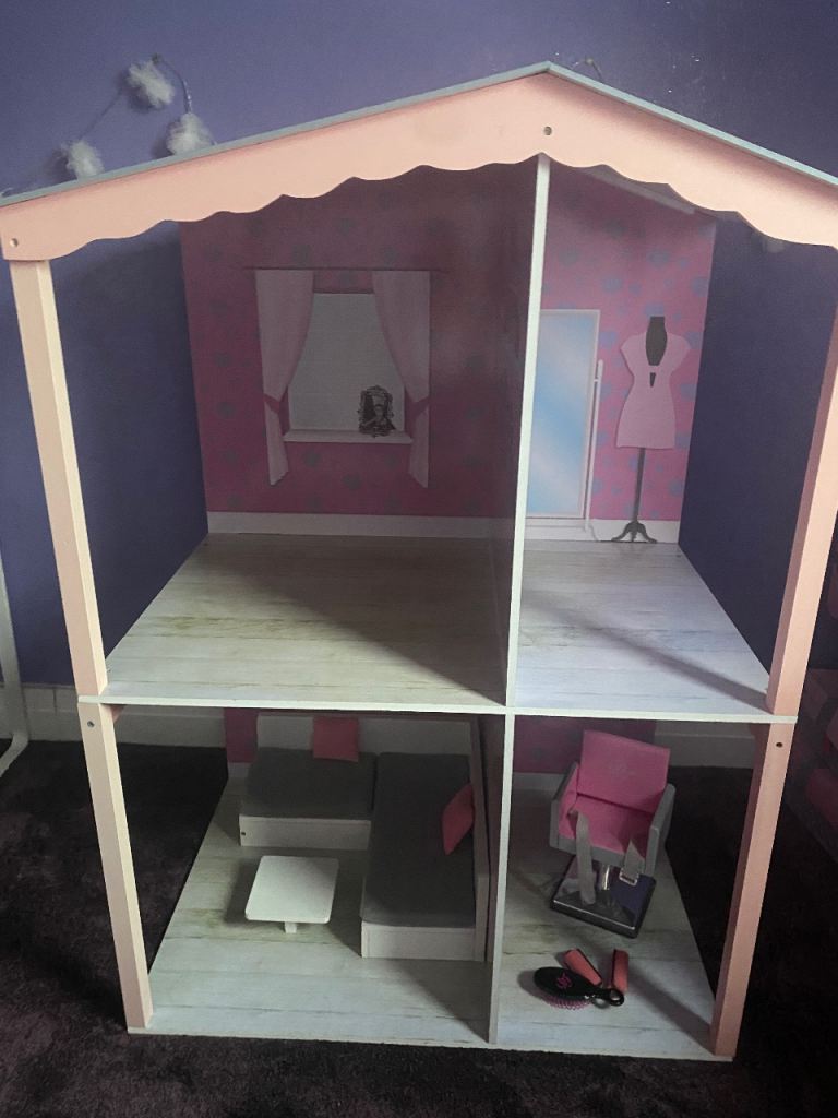 Dolls house for sale. Only a couple of years old and very lightly used. 123cm high. 83cm wide. 43 cm deep. Sold as seen. All furniture pictured, included. £40 ono. Collection only.