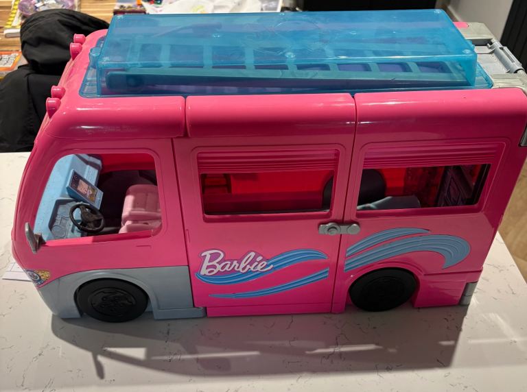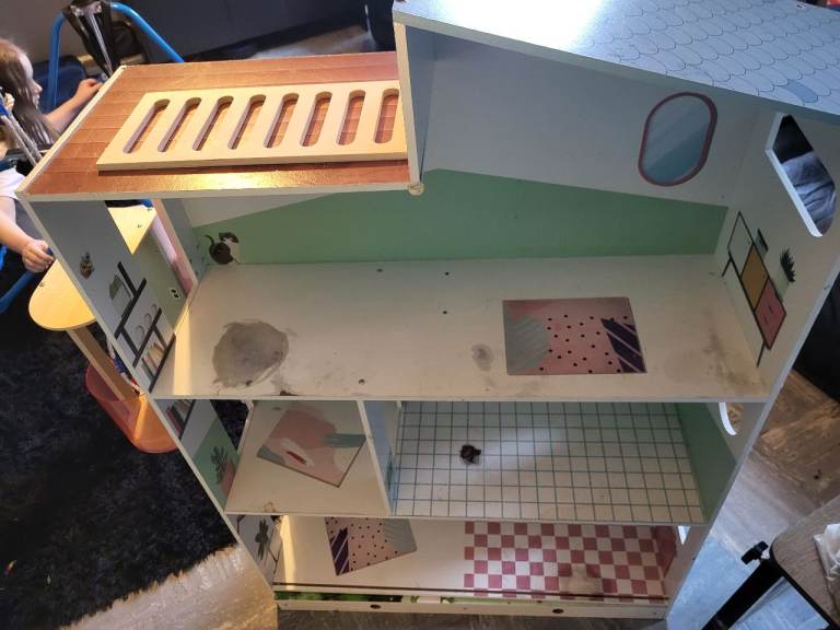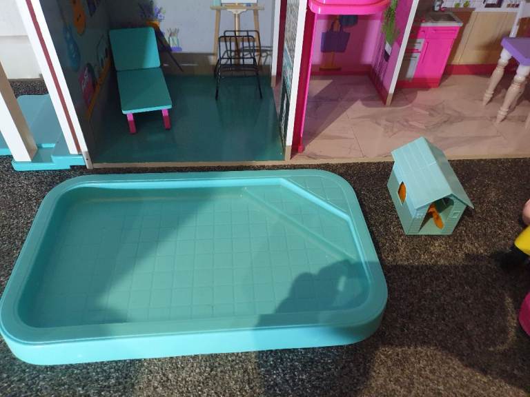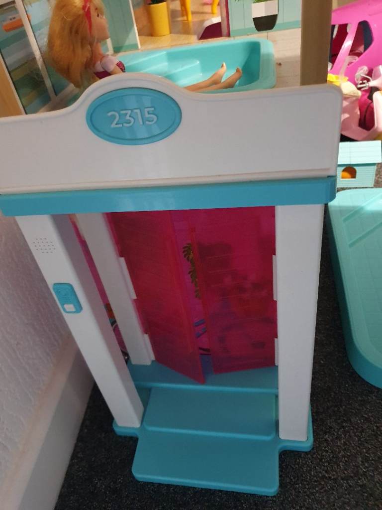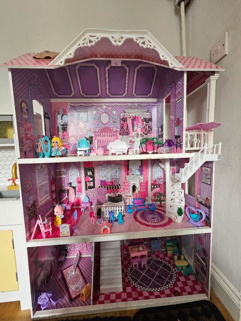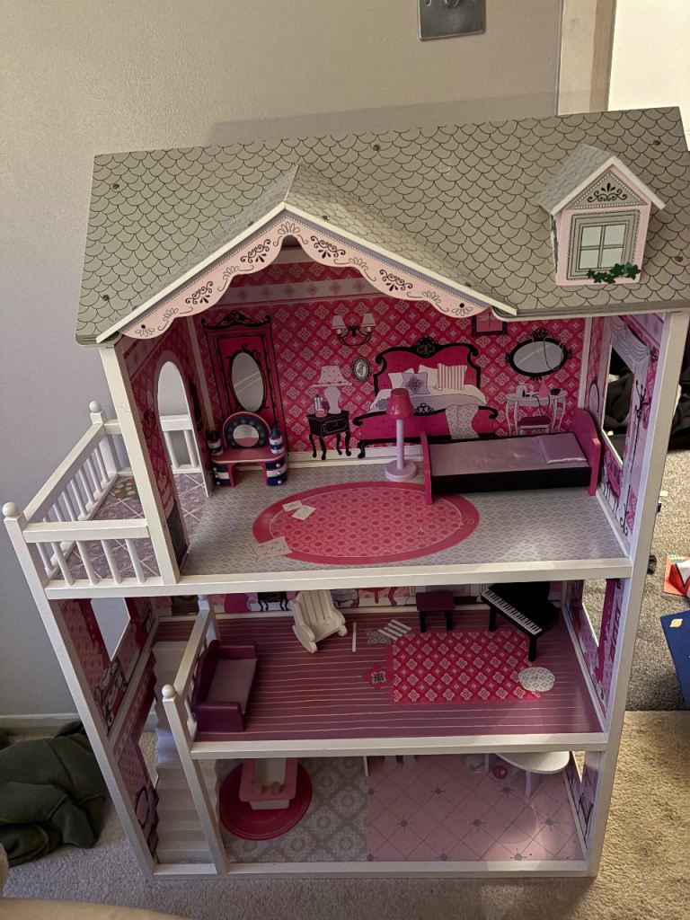 My Daughters Amazing! Dolls house! Hardly played with, spotless!+ Barbie plane, car, ambulance , moped, Dolls, wardrobe ,accessories. Working lights, toilet,door bell. All cost over £300! 4ft high & wide. Absolute bargin! £55! Big car or van needed!