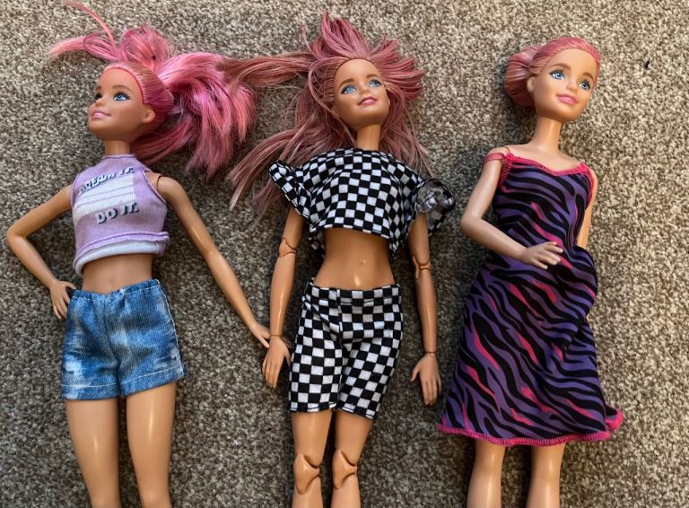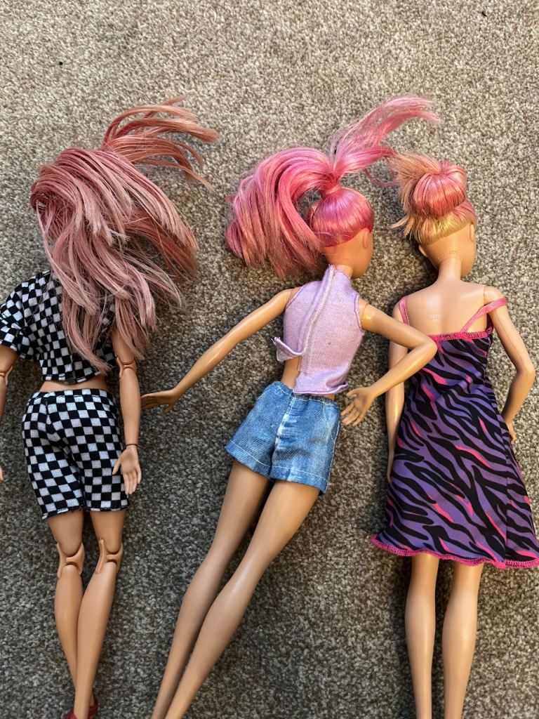 There is some minor discolouration on some of the pink plastic from sunlight but nothing major and doesn’t affect use at all. My daughter has also added a bit of colour to some of the doll’s hair 🫣 (see last photo)