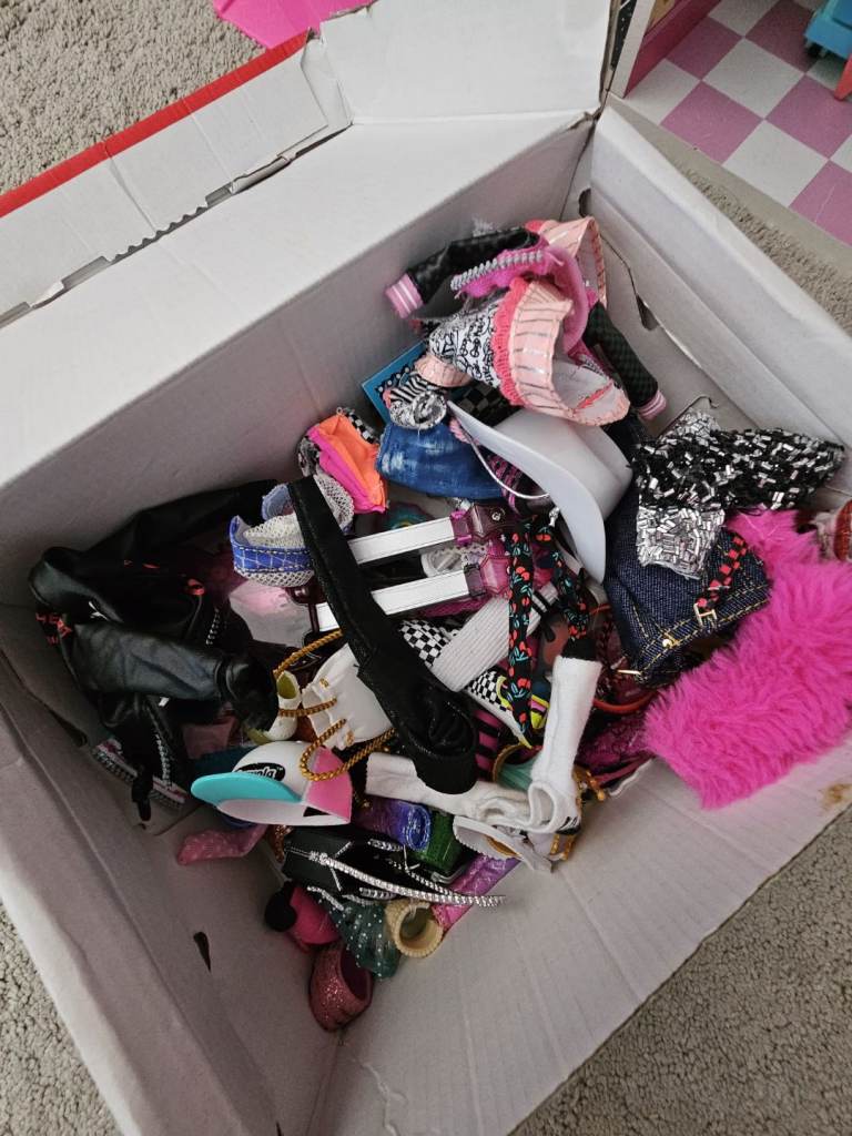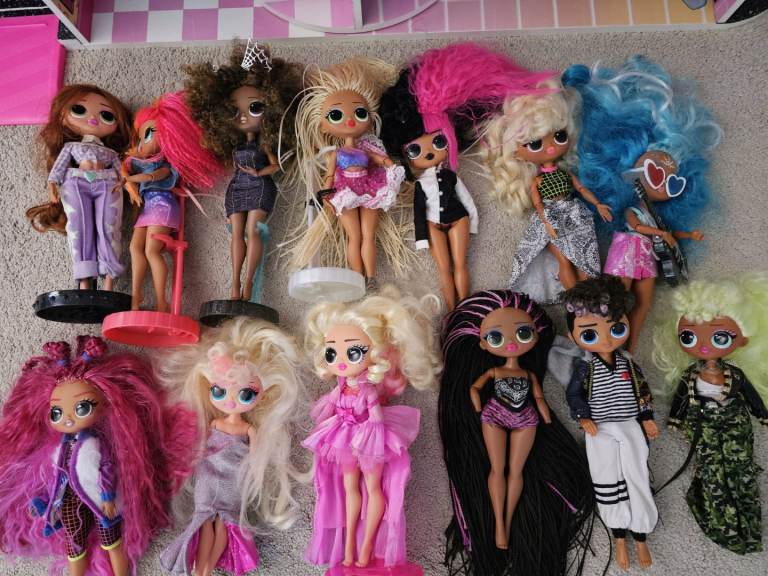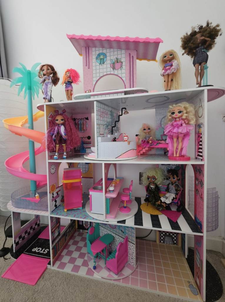 Selling my daughters LOL OMG fashion Doll House with 13 LOL dolls and a box of clothes and accessories.