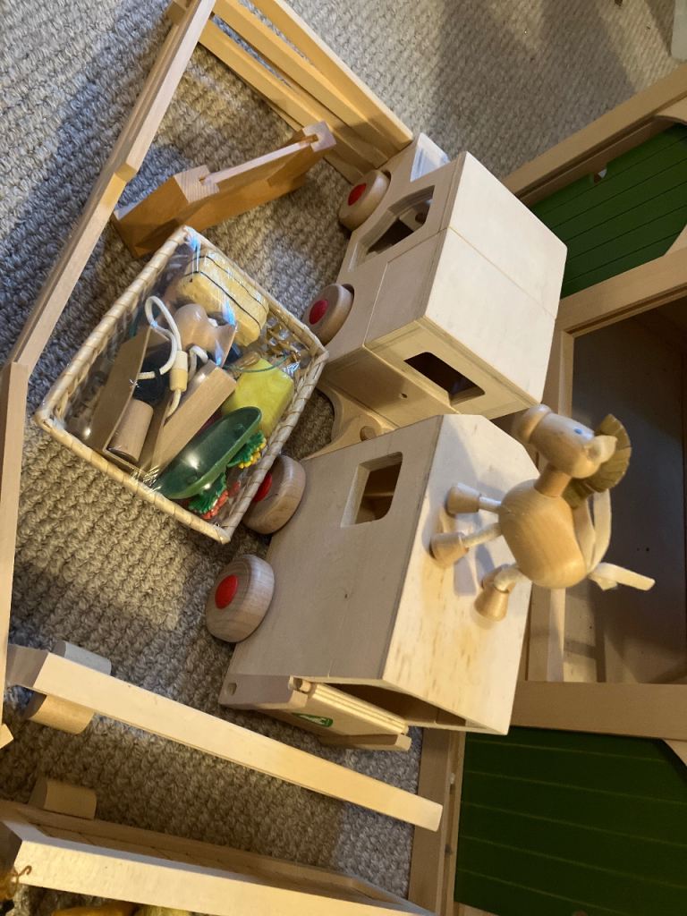 Posting for 4+ yearsWooden horse stables toy