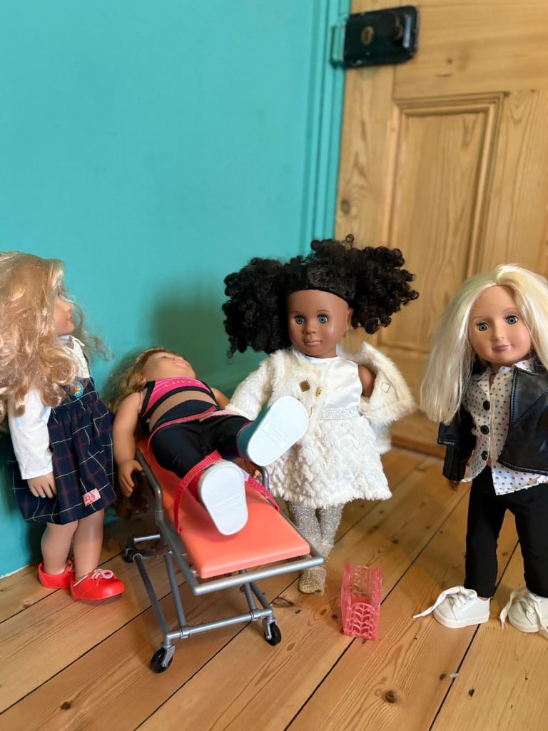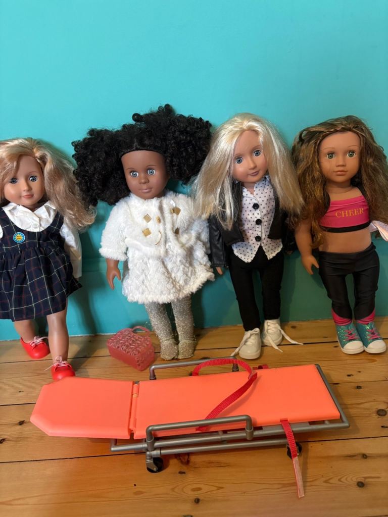 4 original our generation doll complete with full outfits and some accessories. Good condition