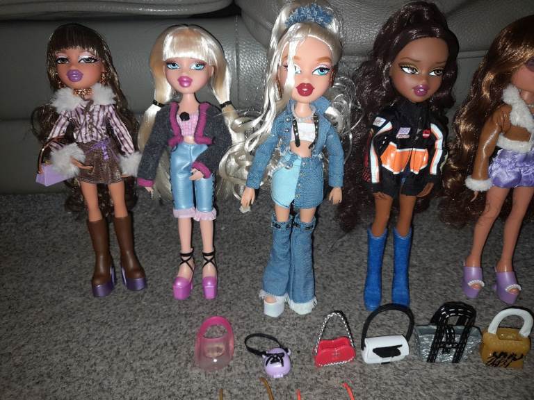 BRATZ DOLLS,ALL 7 HAVE BEEN ON DISPLAY IN CABINET,ALL HAVE THERE HANDBAGS AND 3 HAVE SUN GLASSES AS THEY CAME WITH,PRICE IS FOR THE LOT,COLLECTION ONLY