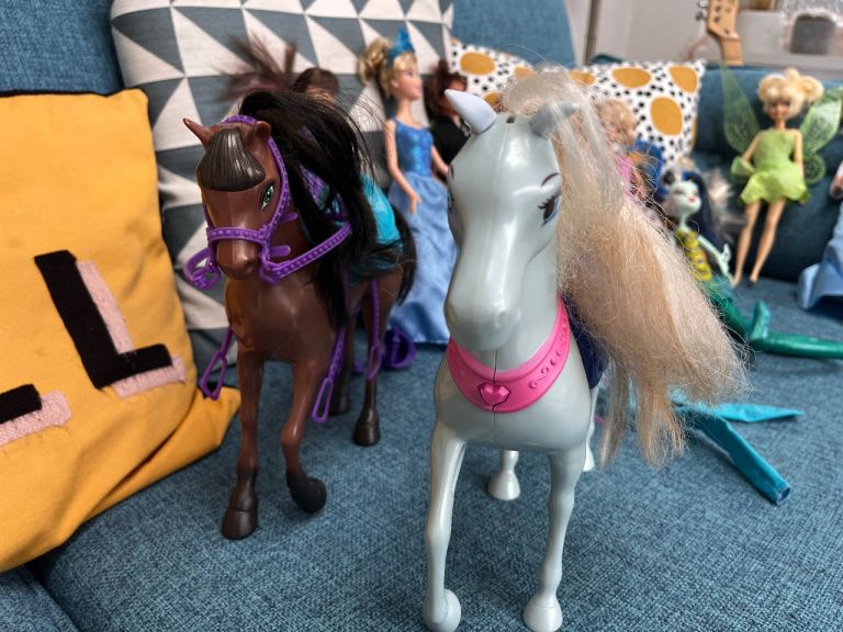 9 Barbie dolls and 2 horses - in great condition