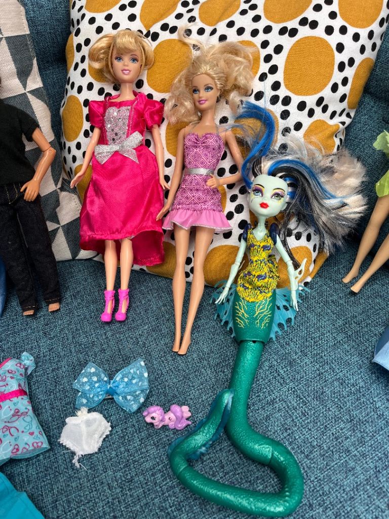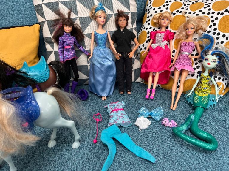 A collection of 9 Barbie dolls and 2 horses and accessories. All in great condition.