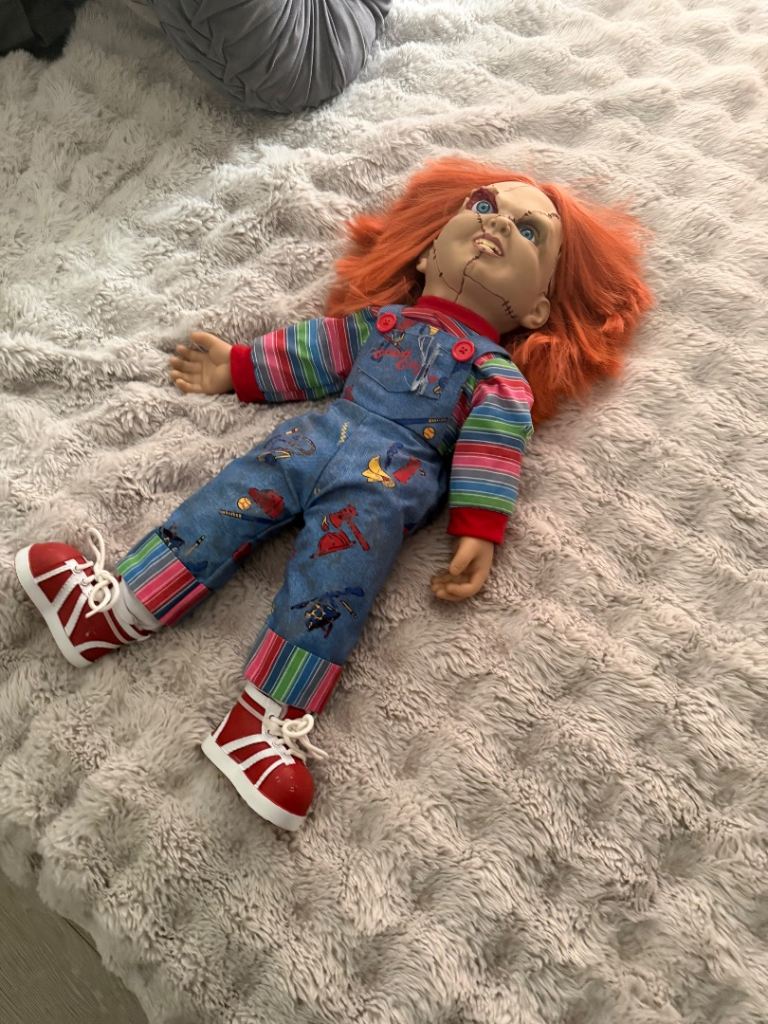 Genuine Ashton Drake doll & chair dressed in blue & white with converse shoes. Collection Troon £180 ONO