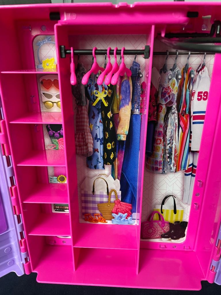 Barbie Fashionistas Ultimate Closet,Translucent Doors, Storage Spaces, Fold-out Rack, 6 Hangers