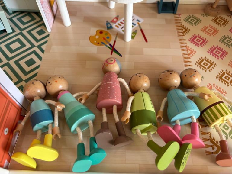 My daughter got this for Christmas but has never really played with it, so great condition. Comes with all accessories, mostly wooden but some plastic.